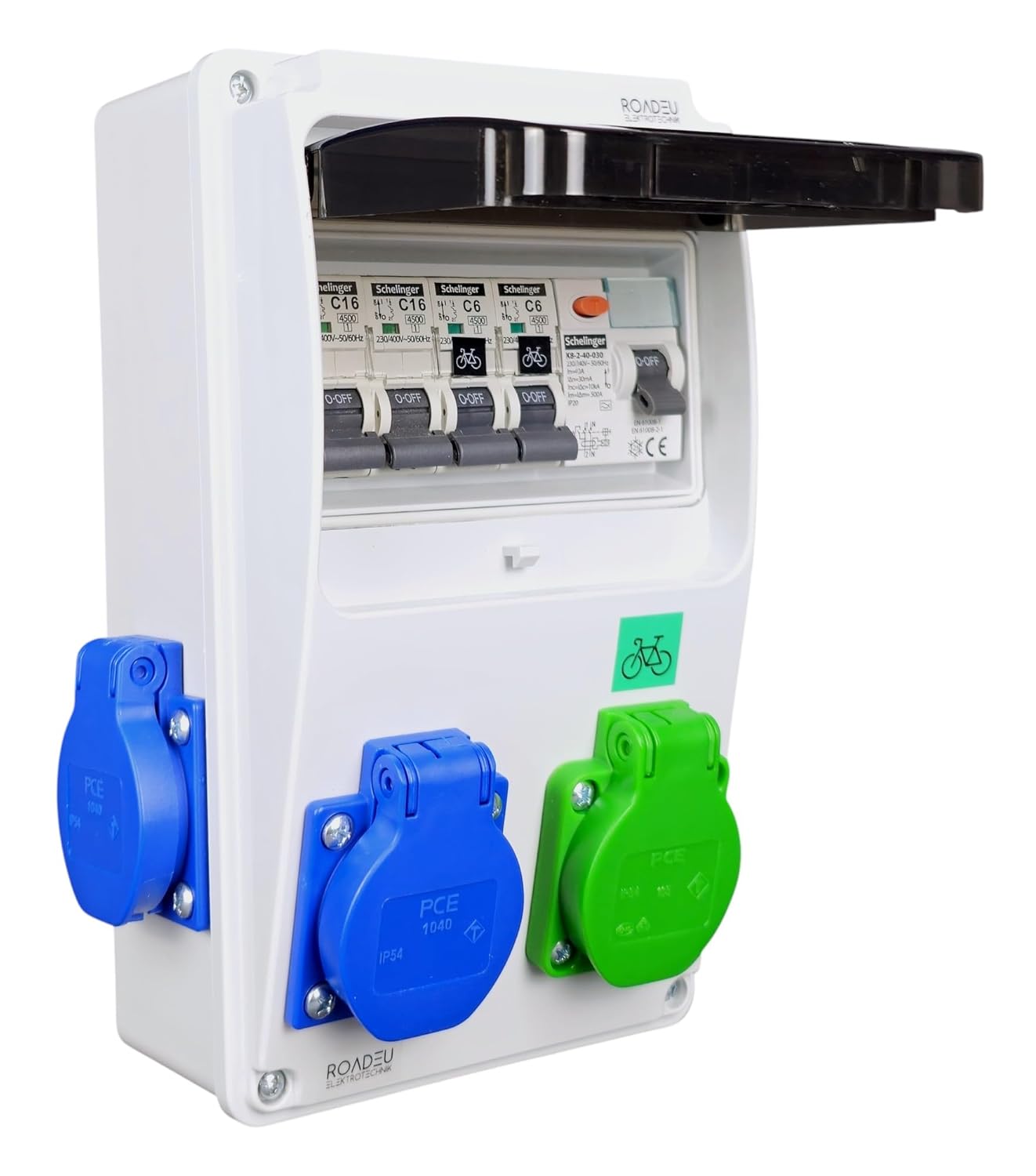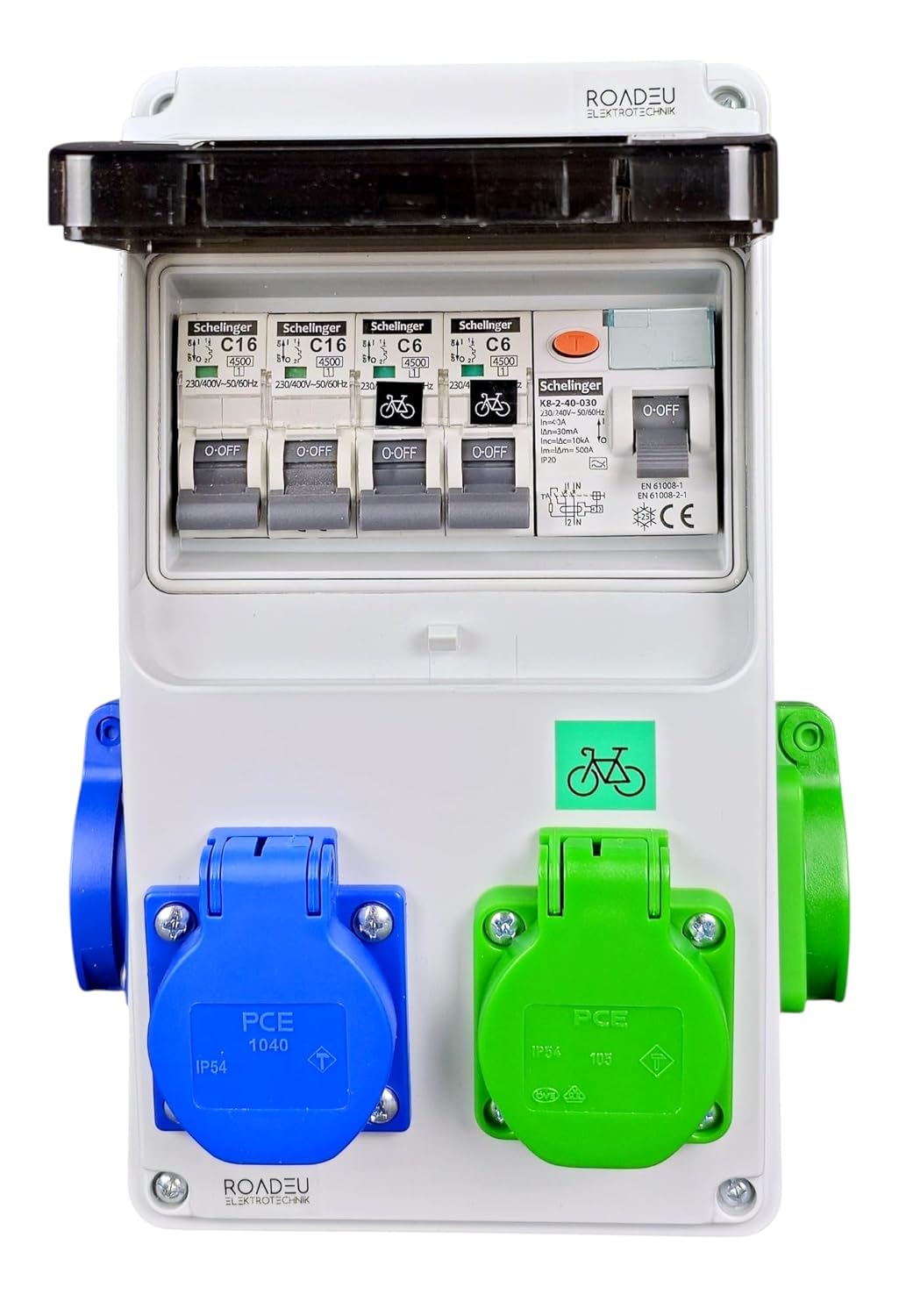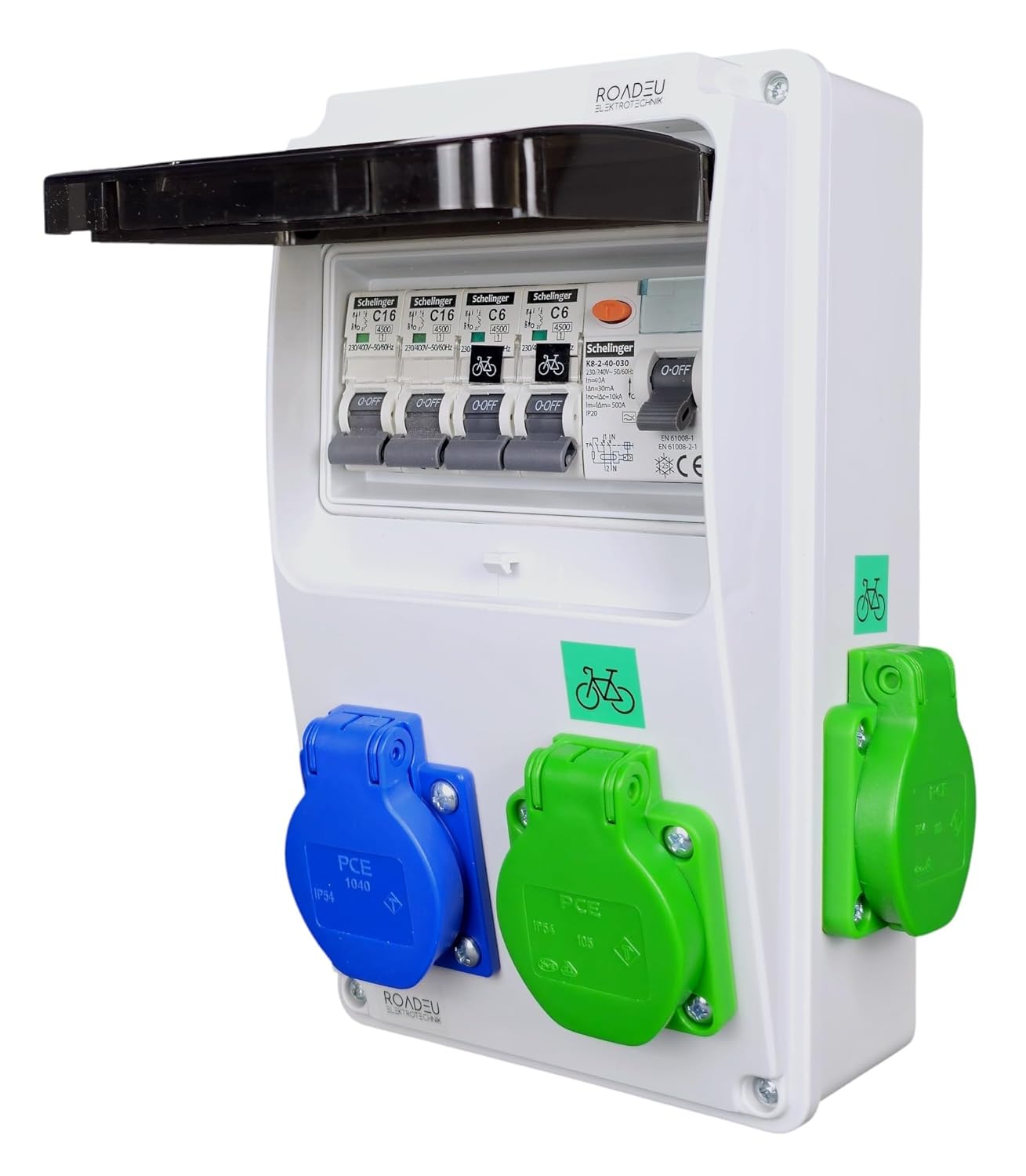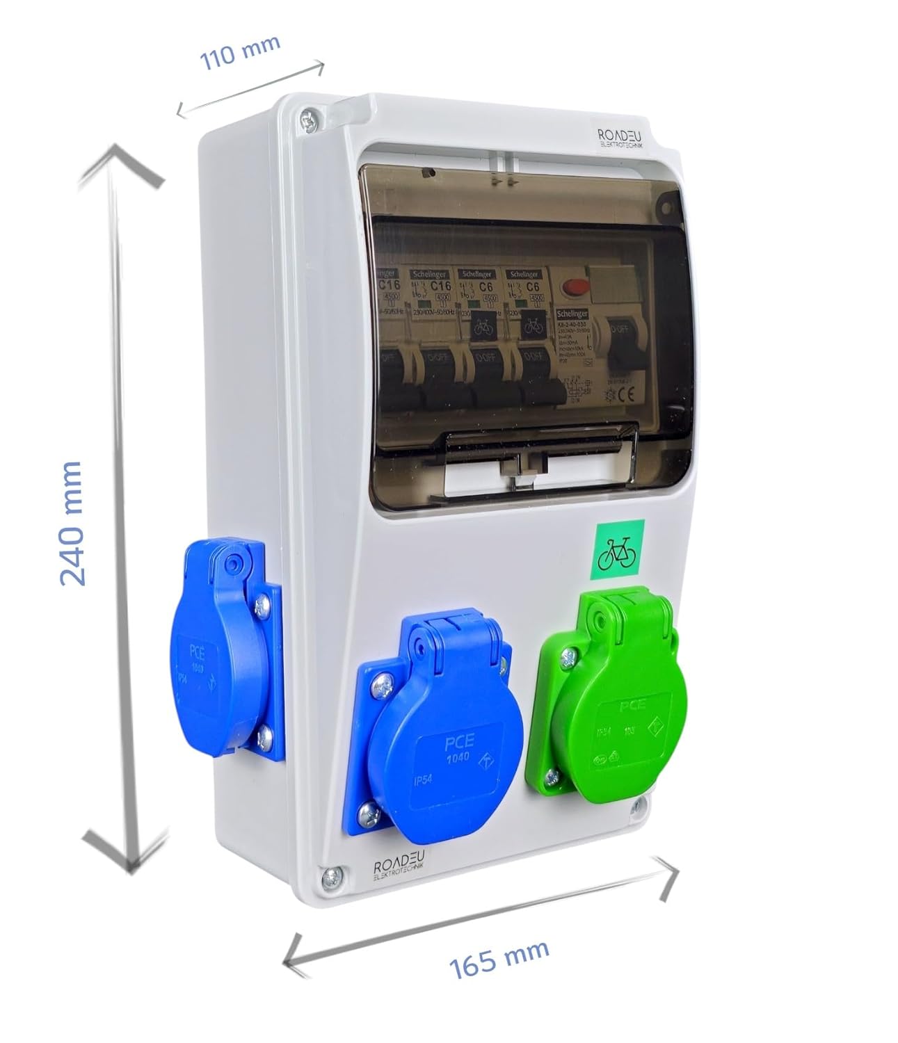 ⚡ Individuell abgesichert: Jede Steckdose mit eigenem Leitungsschutzschalter – C6A für E-Bike, C16A für Schuko – klare Trennung der Verbraucher.