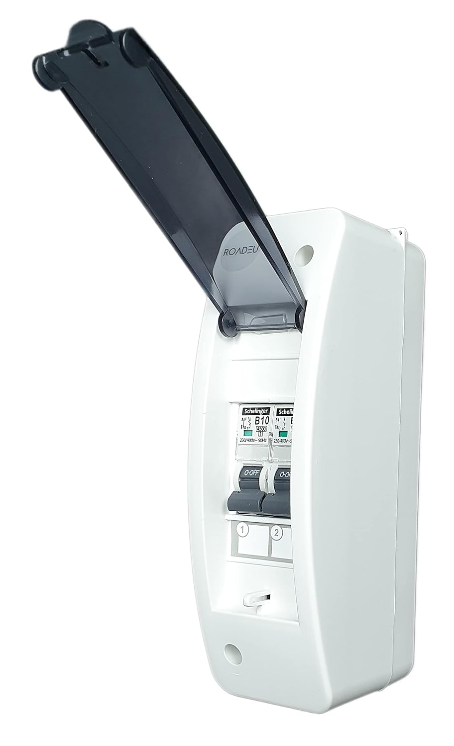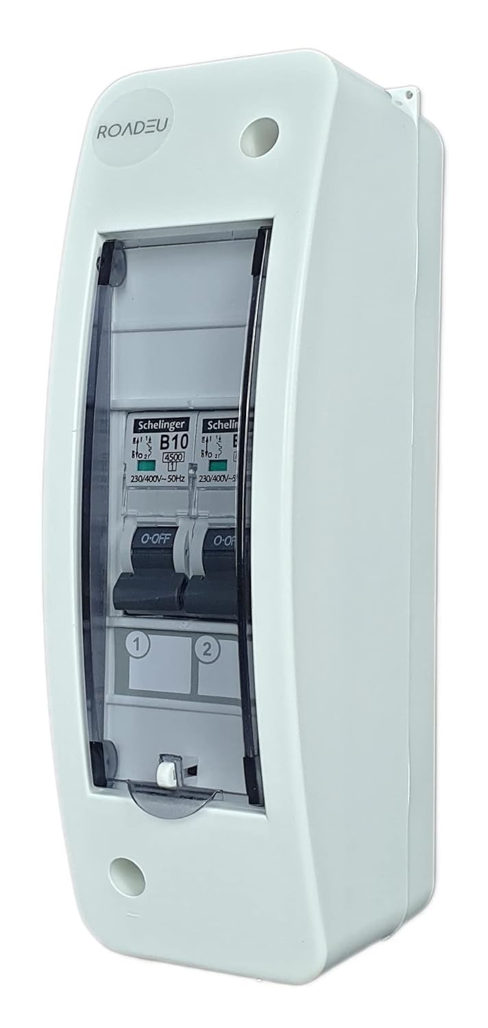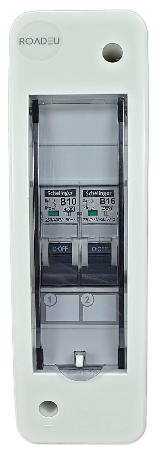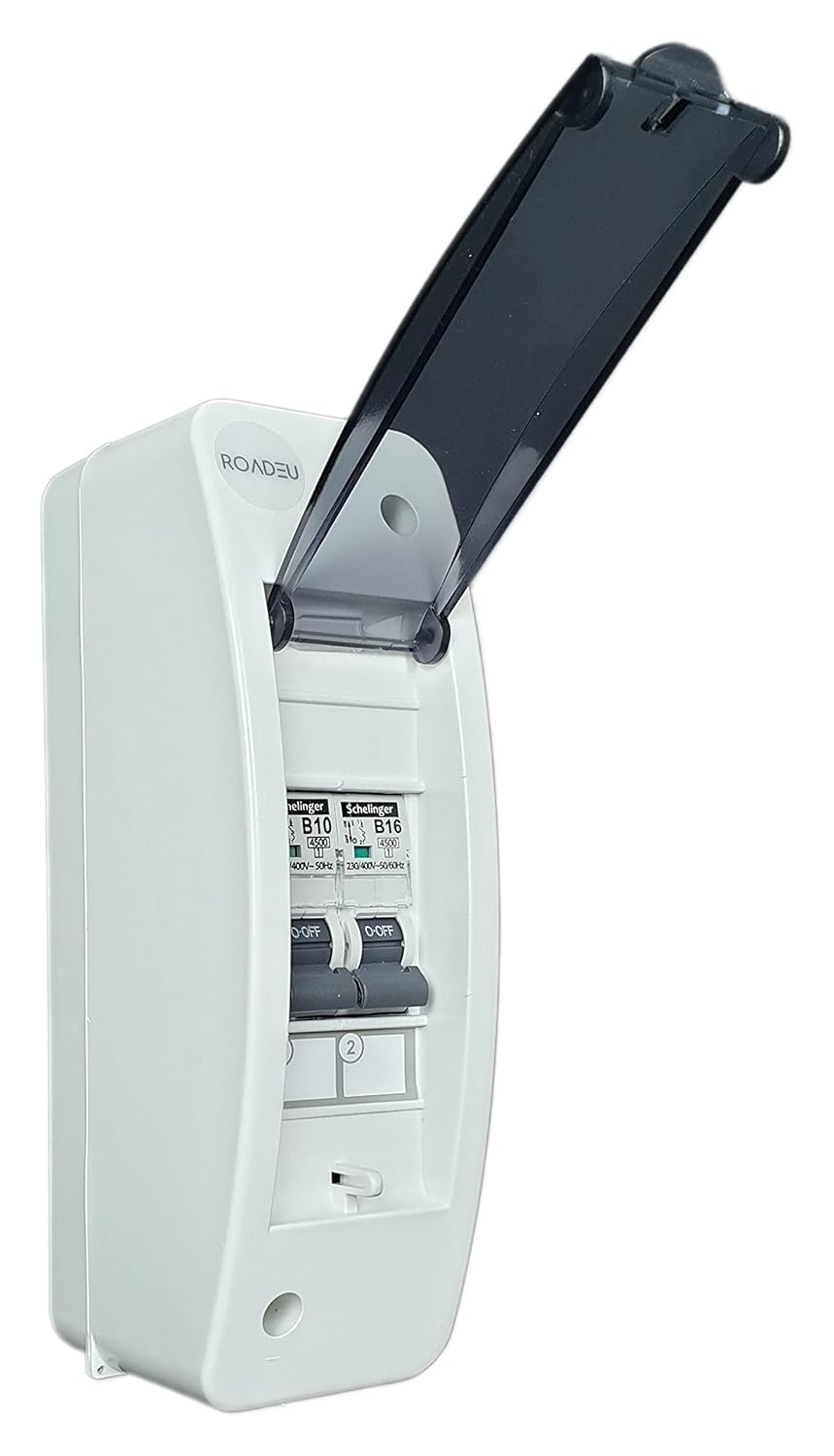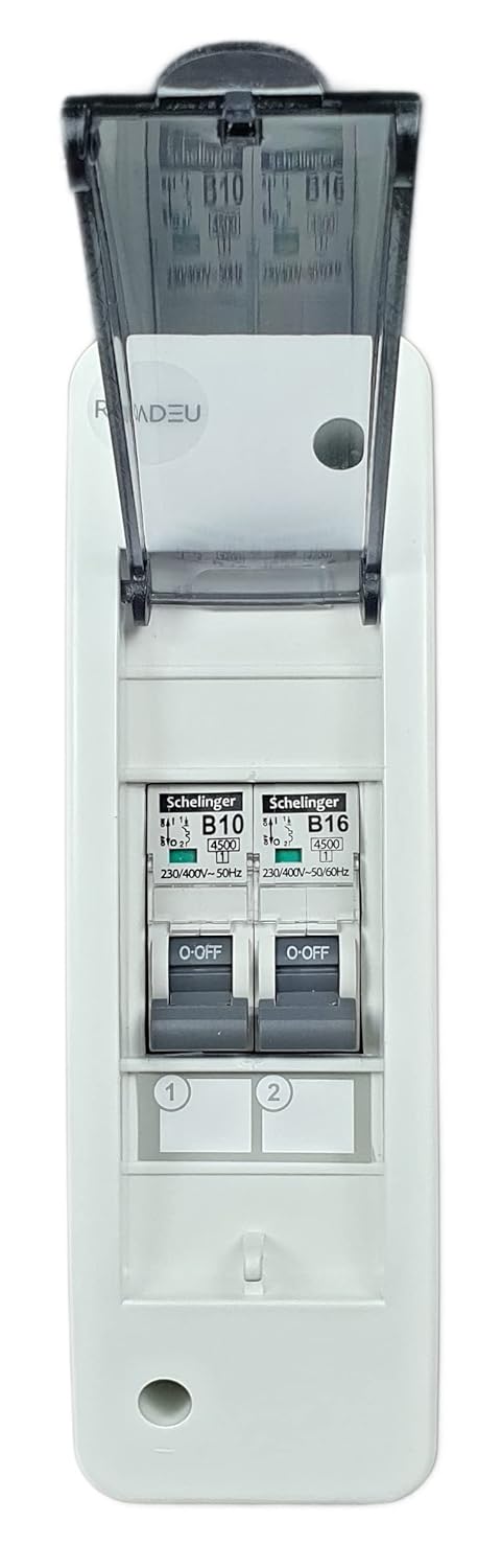 ABSICHERUNG: Der Verteiler verfügt über eine Absicherung von 1x LS B16A 1P und 1x LS B10A 1P. Diese Absicherungen schützen Ihre Geräte vor Überlastungen und Kurzschlüssen. Die Herstellerzertifikate von TÜV garantieren, dass der Verteiler den höchsten Standards entspricht.
