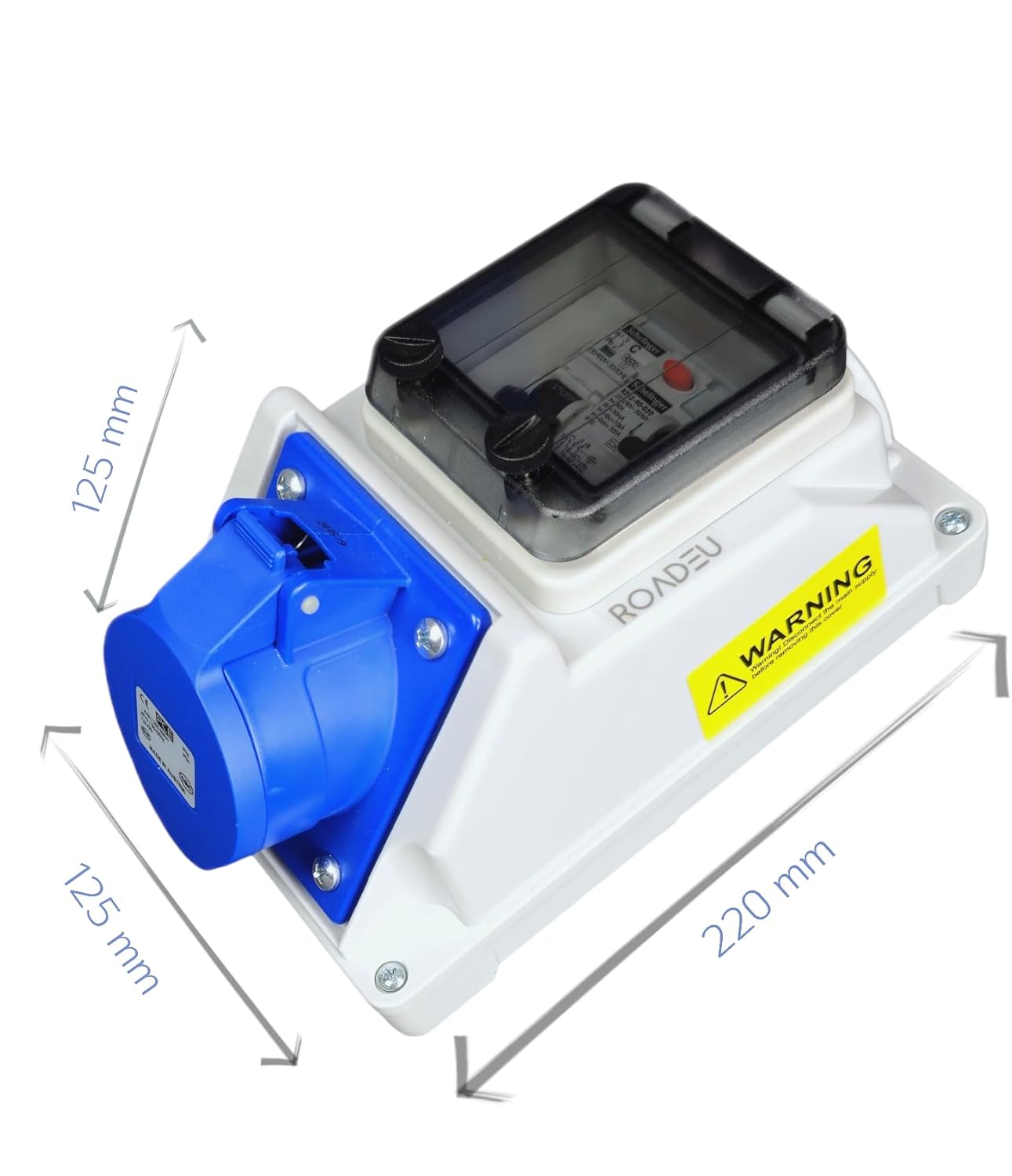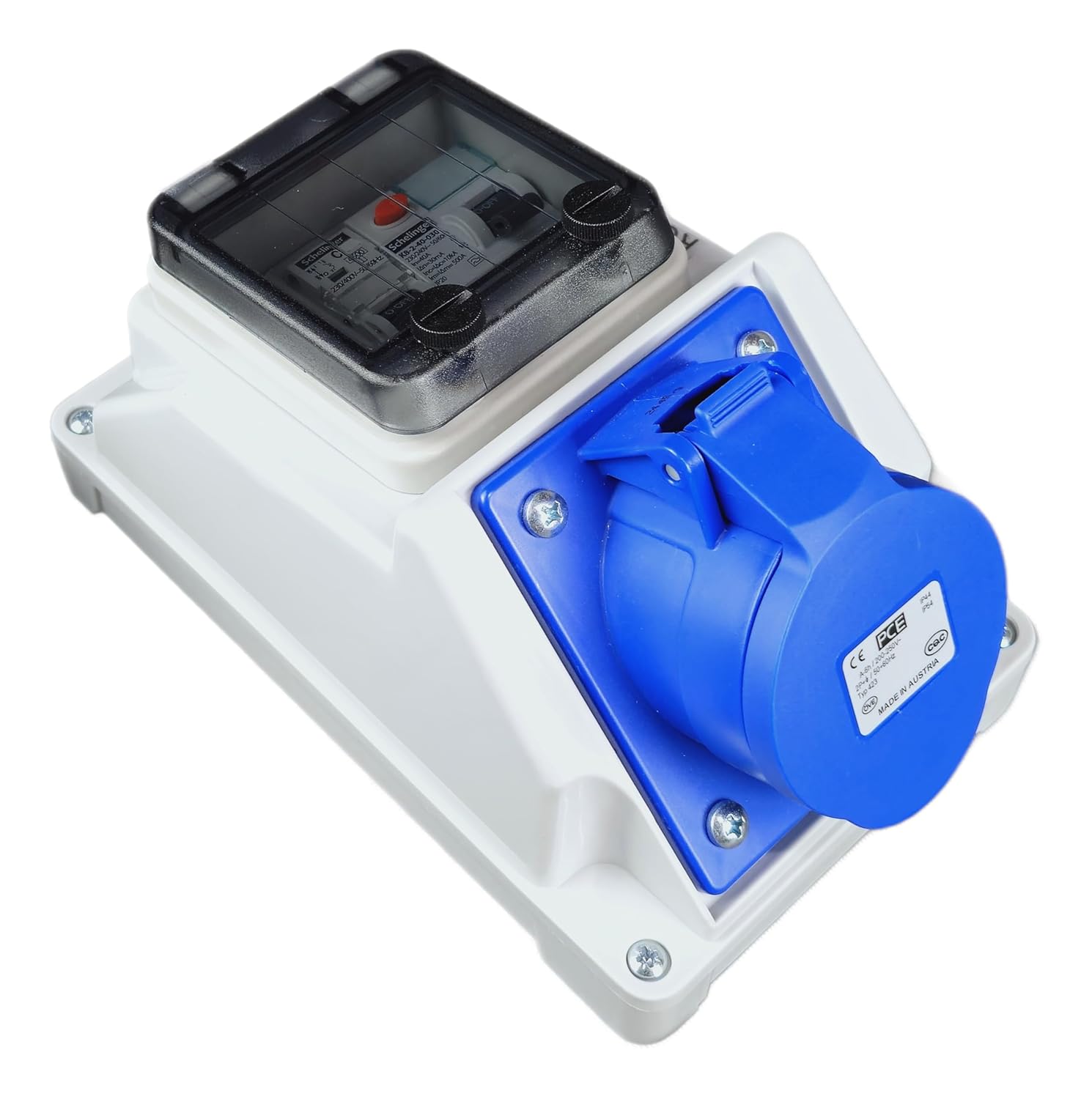 Das Steckdose enthält je 1x FI-Schalter 40A 2P 30mA typ A & 1x zuverlässige LS Schalter C16A 1P.