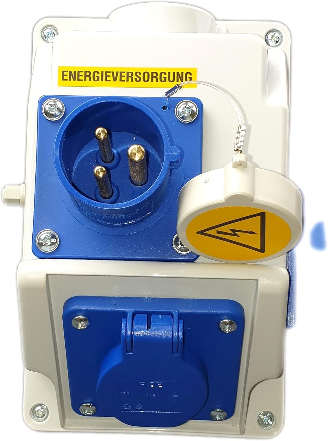 Der Adapter verfügt über einen PCE Stecker mit einer Leistung von 16A und 3 Polen sowie einer Spannung von 220-250V.