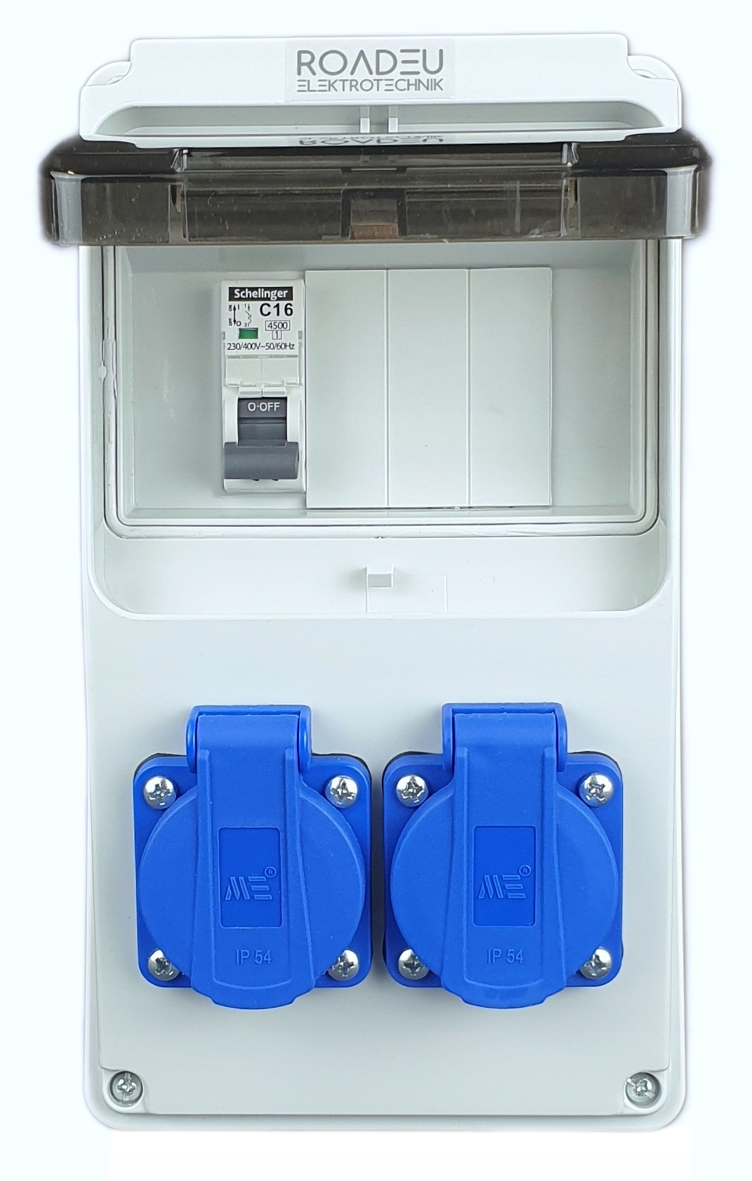 - AUSSTATTUNG: Der Verteiler bietet 2 230V 16A IP44 Steckdosen, die in jeden geraden oder gewinkelten 230V-Stecker passen.