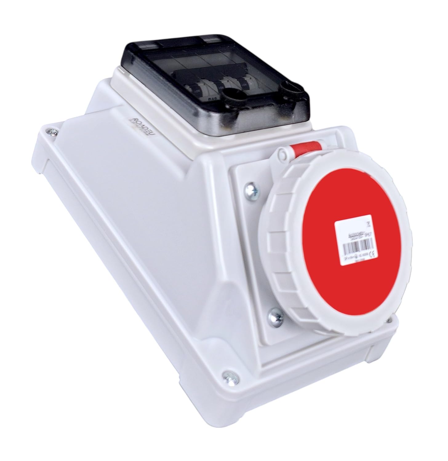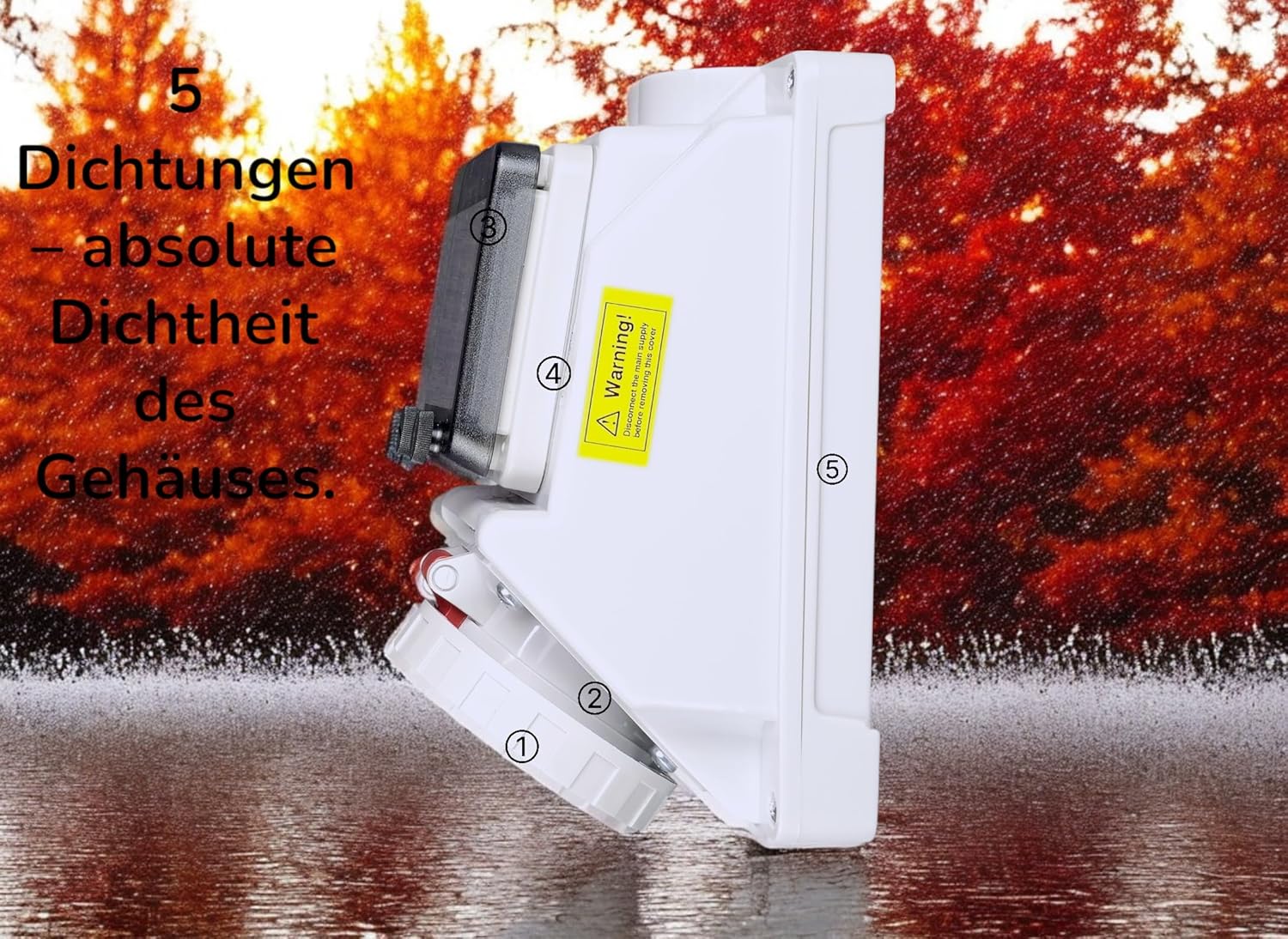 IP66 CEE 32A Wandsteckdose mit LS-Schalter – 400V 5-polig – Dreiphasige Außensteckdose – Wasserdicht & staubdicht
