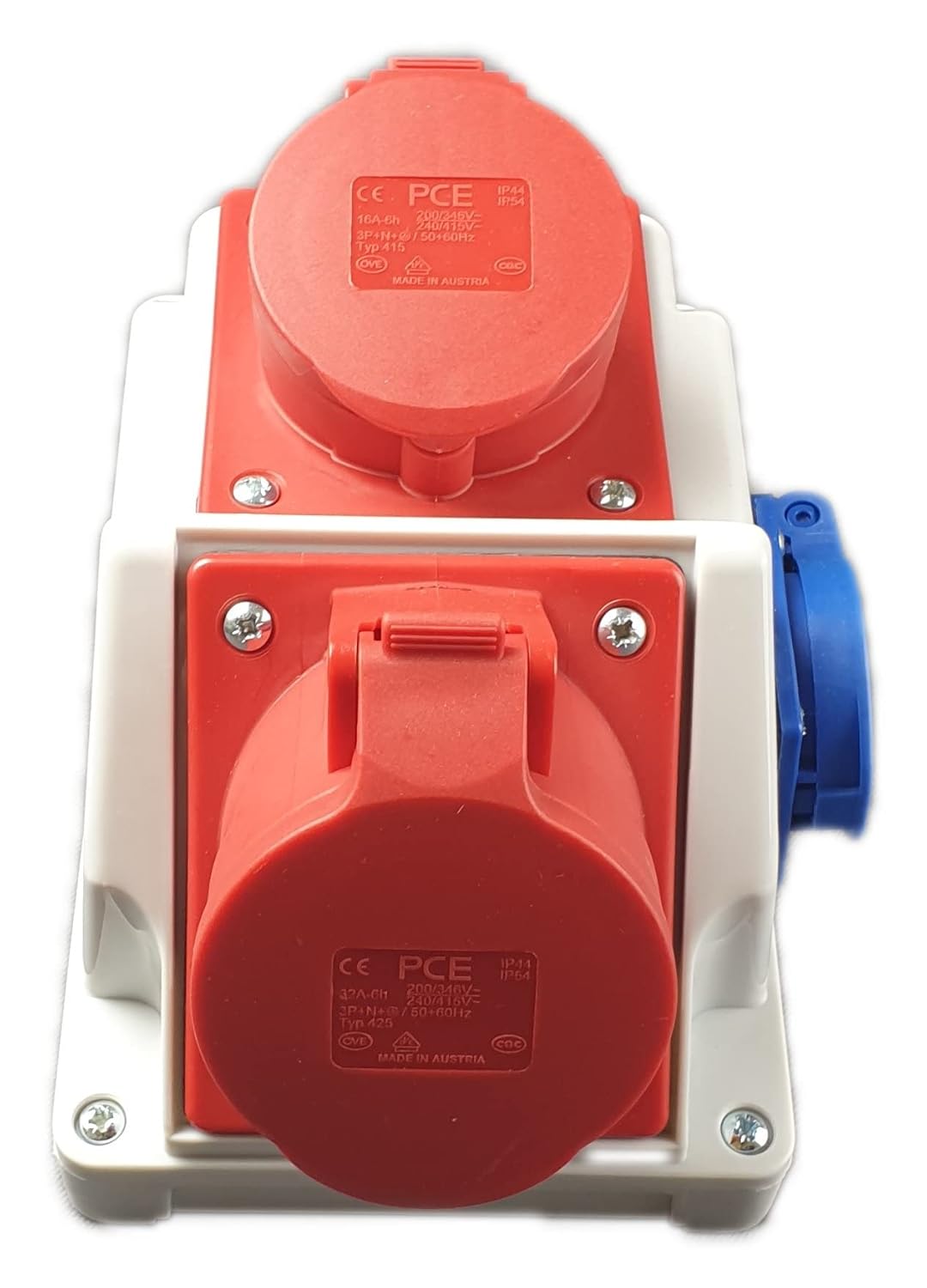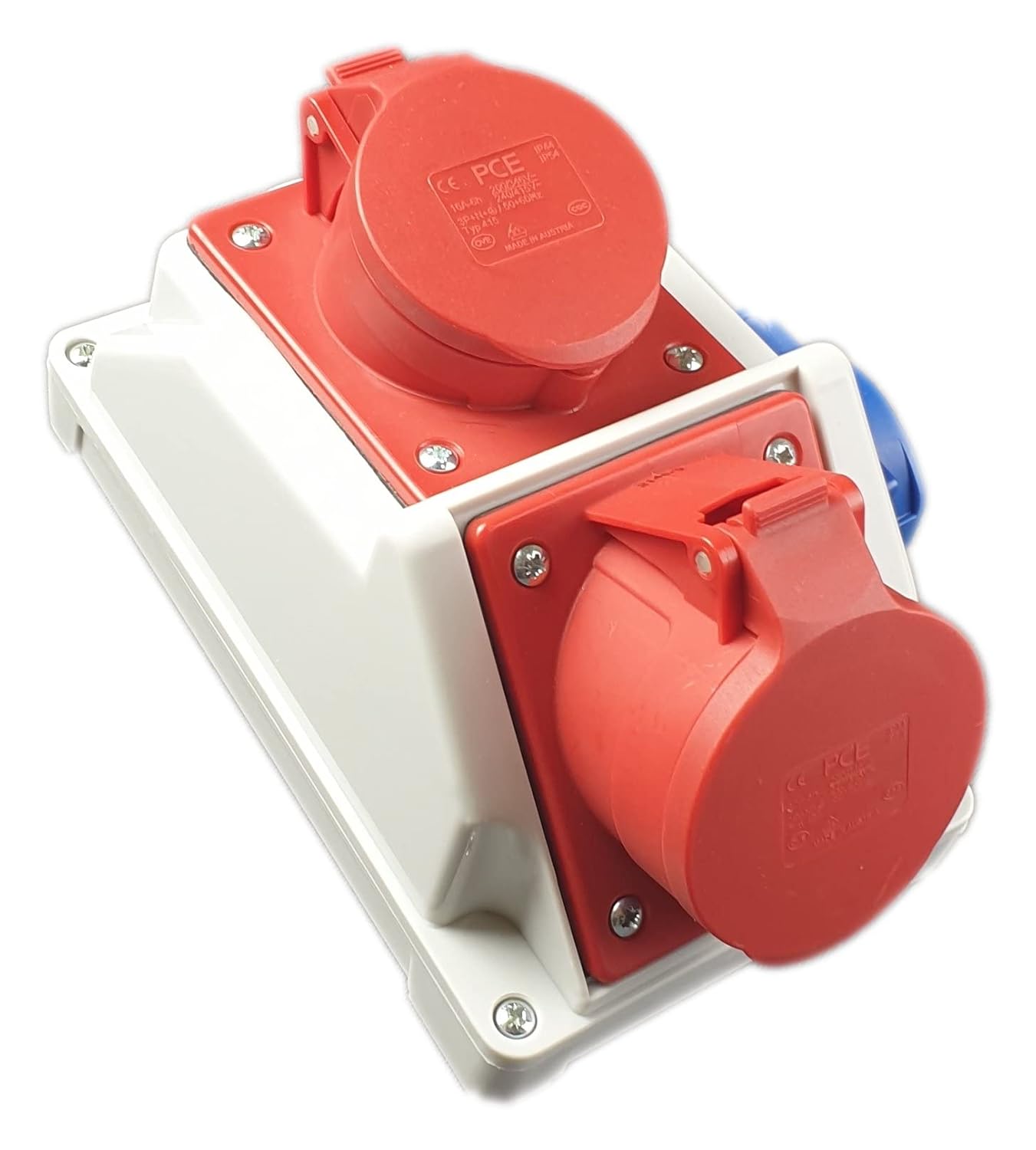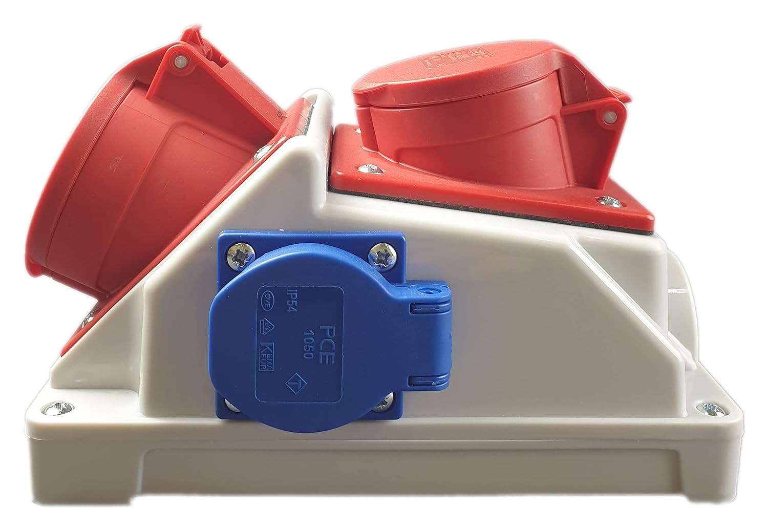 Kombi Wandsteckdose – Wandverteiler 32A, 16A CEE Steckdose mit Schuko 230V – Baustromverteiler 16A 32A – PCE Steckdosen