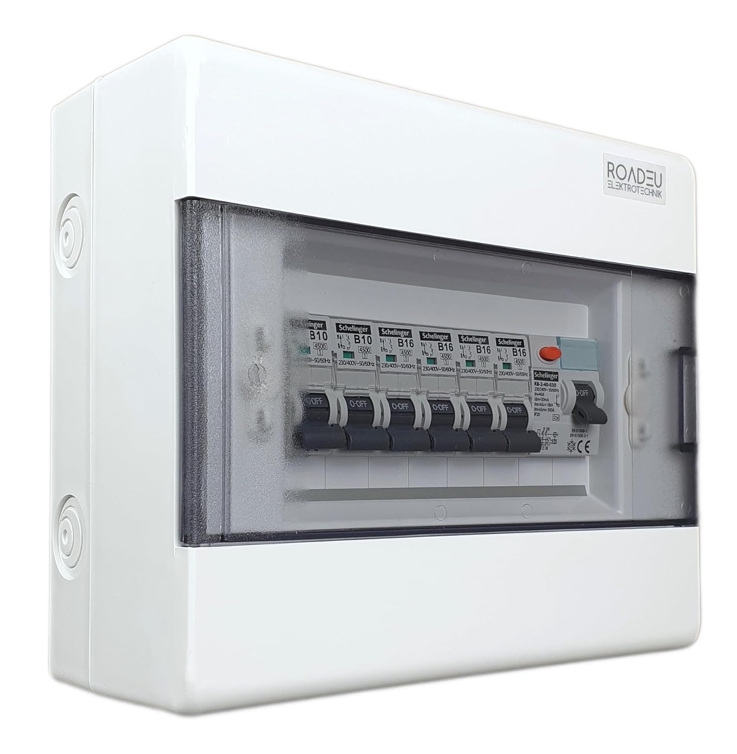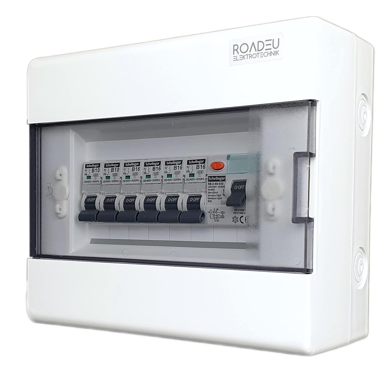WANDVERTEILER ist mit einem 40A 30mA 2P typ A/AC Fehlerstromschutzschalter sowie sechs Sicherungsautomaten mit 4x 16A 1P B und vier weiteren mit 2x 10A 1P B ausgestattet. Zudem gewährleisten die Herstellerzertifikate vom TÜV eine hohe Qualität des Produkts und somit eine zuverlässige Absicherung.