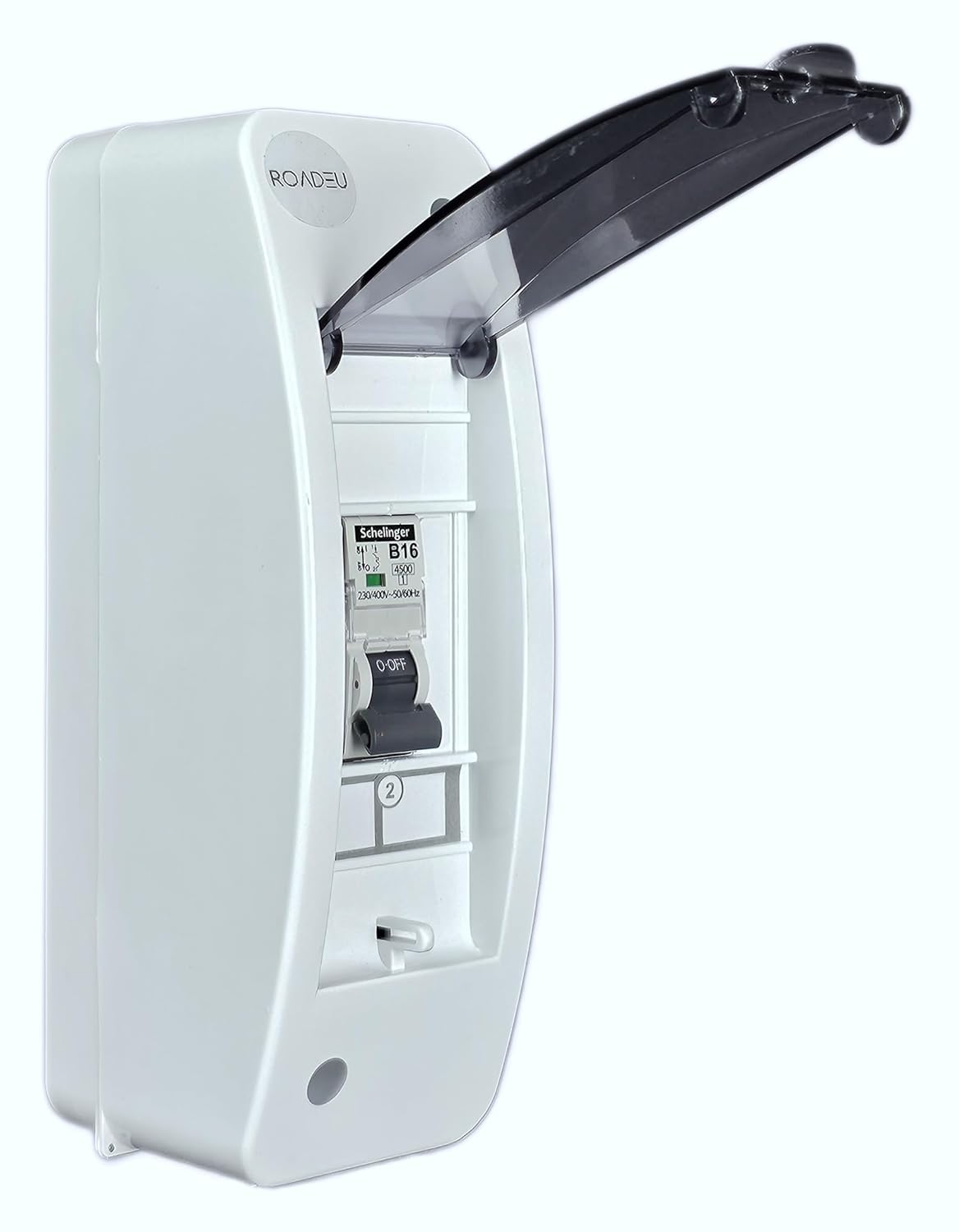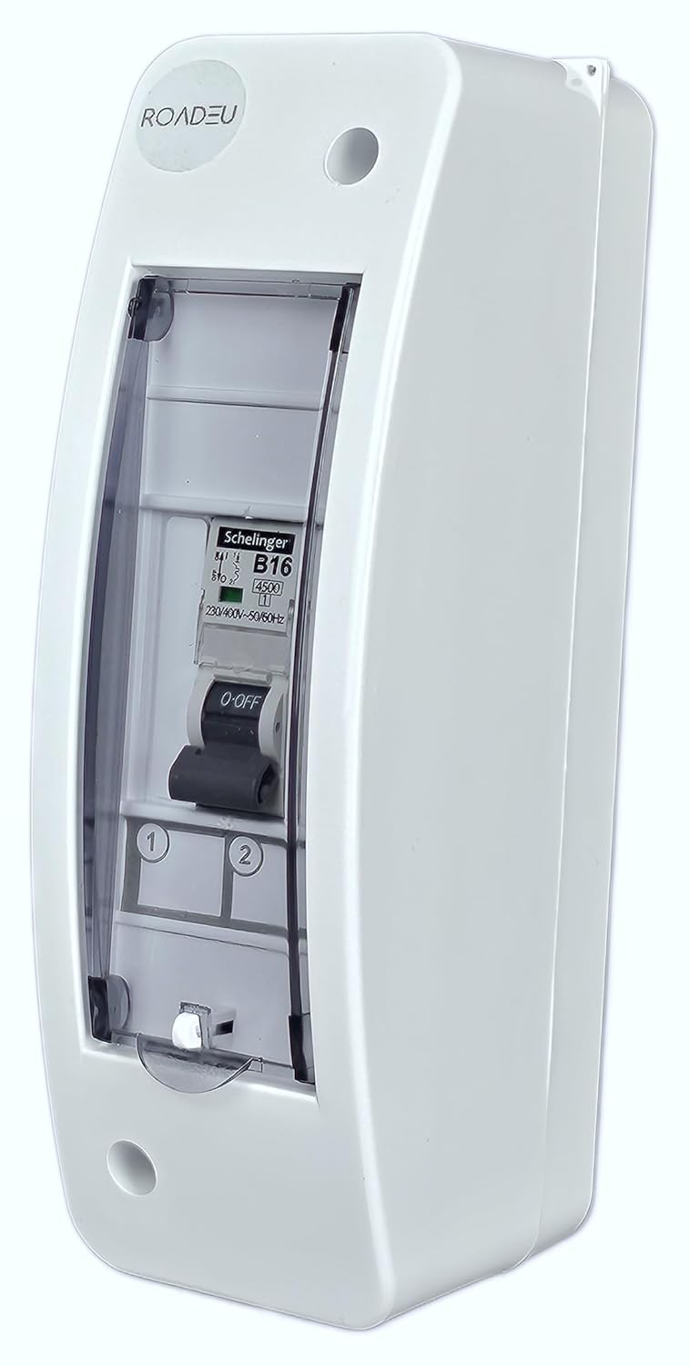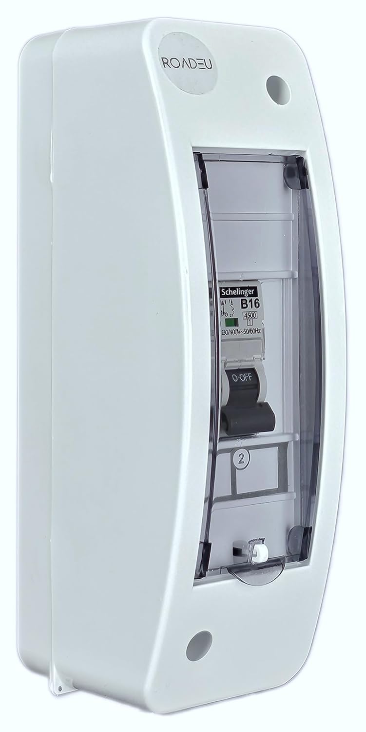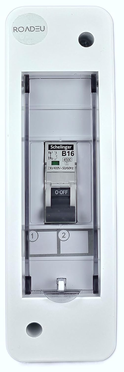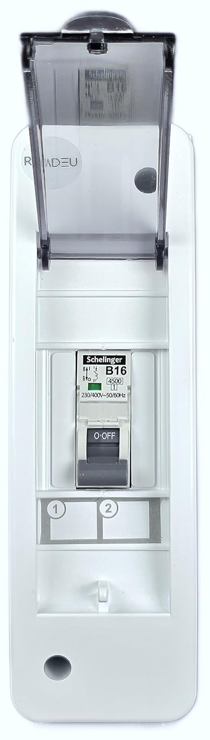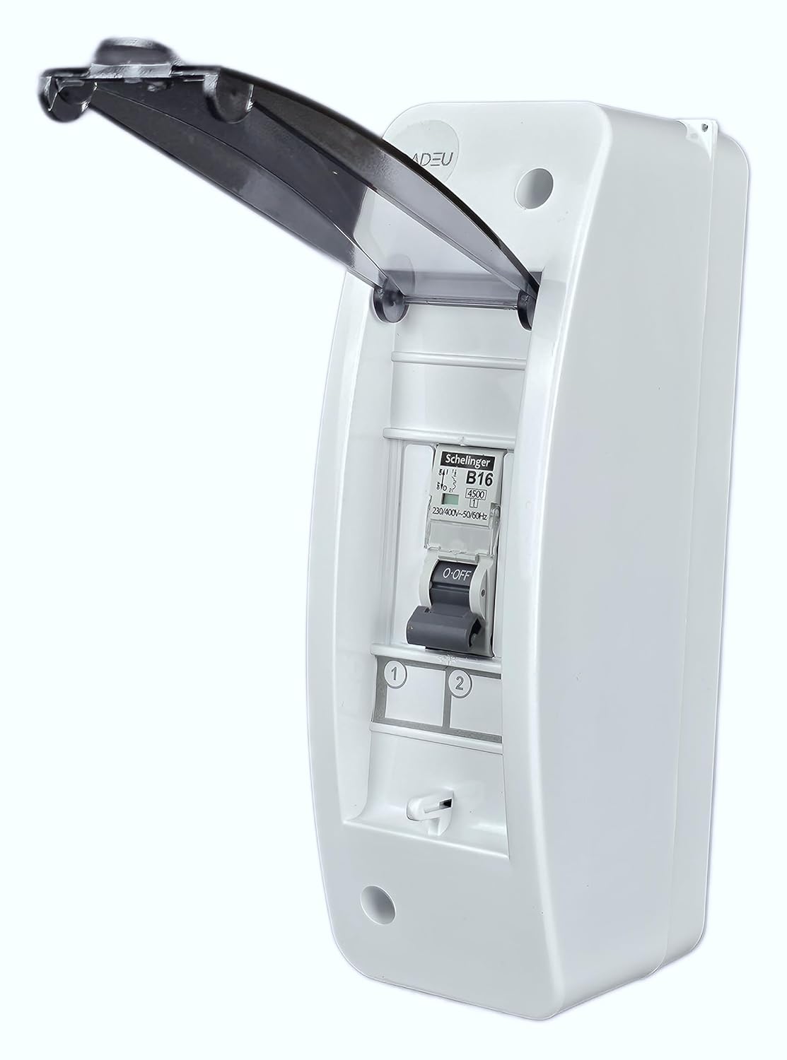 • DIE ABSICHERUNG des Aufputz Verteilers besteht aus einem LS Leitungsschutzschalter „B“ 16A 1-Polig. Dieser sorgt für einen effektiven Schutz Ihrer