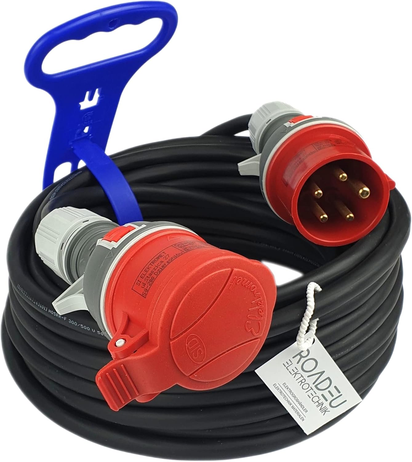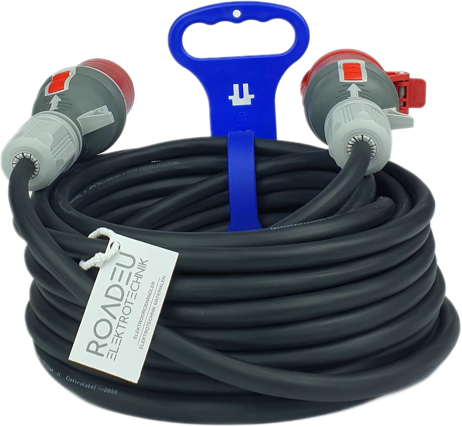 400V Verlängerungskabel – Technische Daten: 16A 5 Polig CEE Stecker – 16A 5 Polig CEE Kupplung (Steckdose) – CEE Kabel 5×2 5 mm. Länge: 25 M – Gummi kabel – beständig ggü. Abrieb, Stößen, Quetschungen, Fetten und Mineralölen
