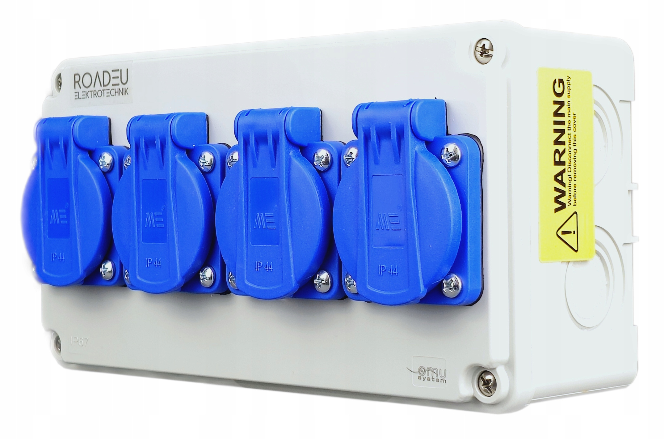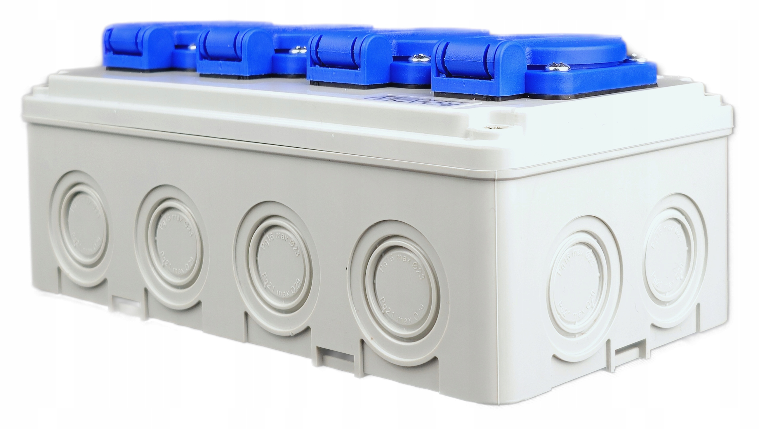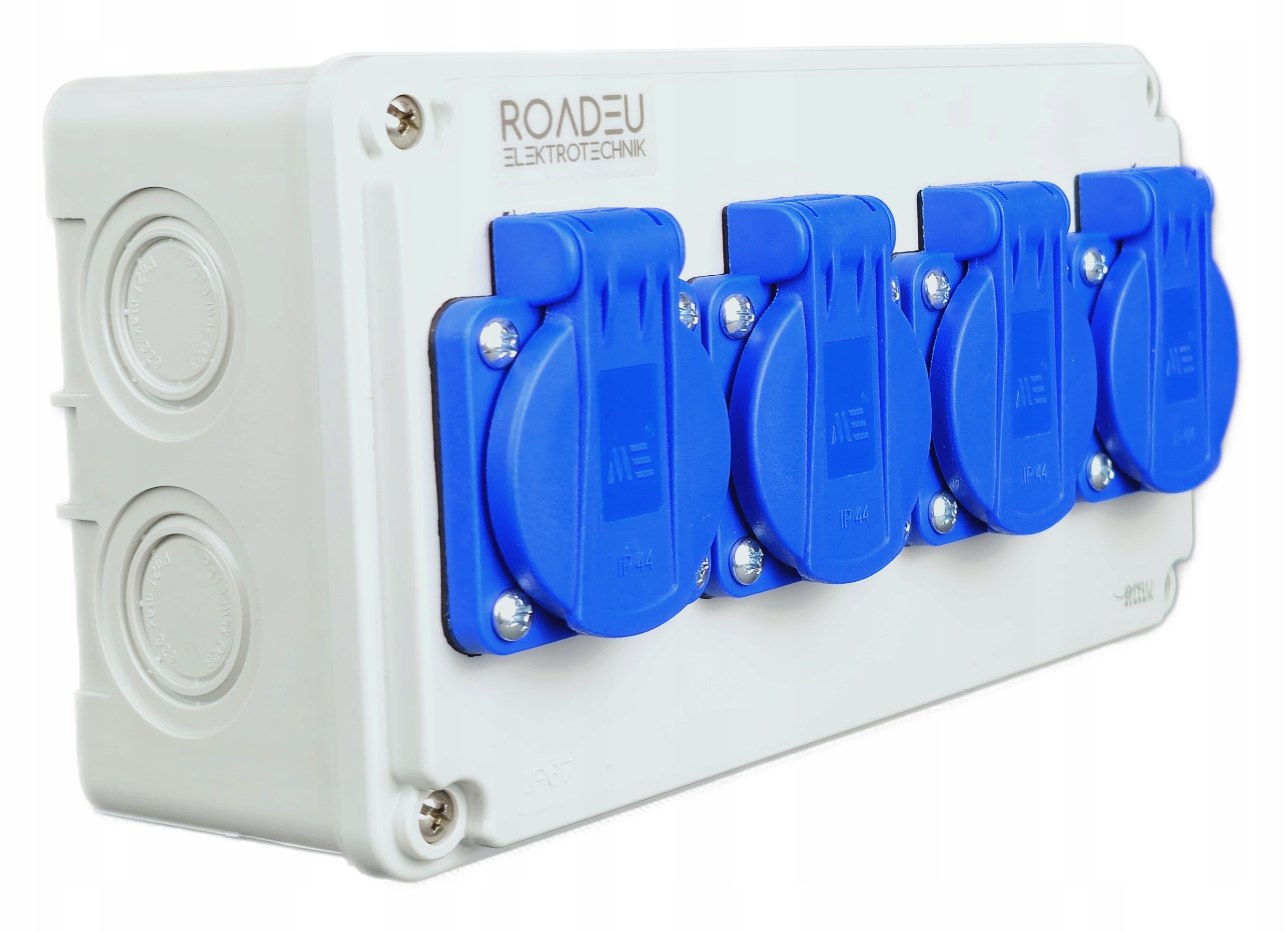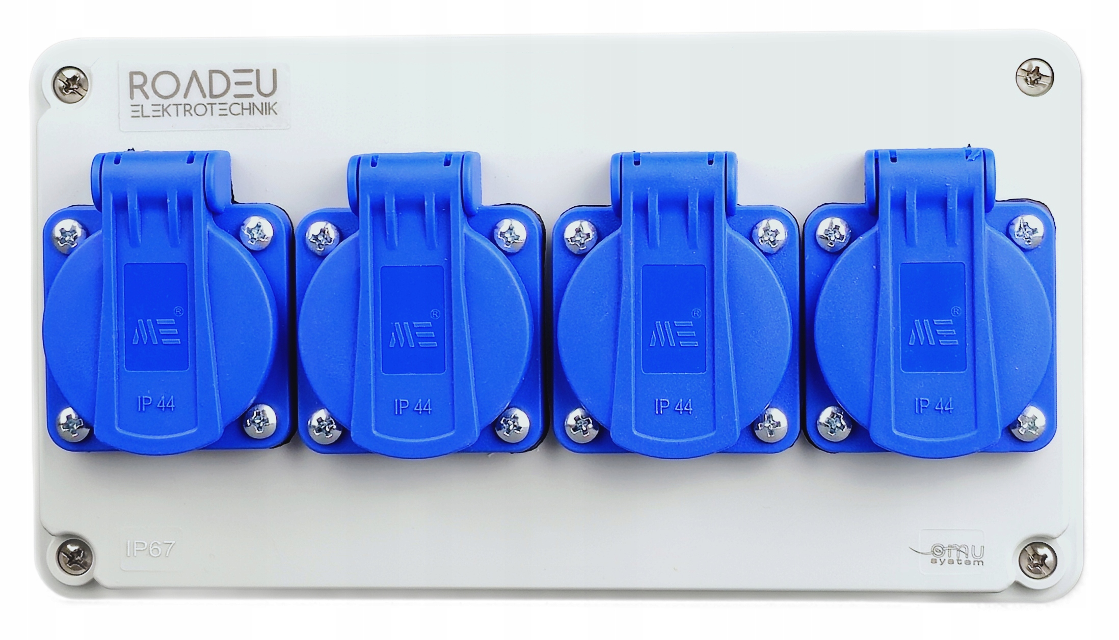 Der Stromverteiler ist mit 4 230V-Steckdosen ausgestattet. Alle Steckdosen sind mit Klappen versehen