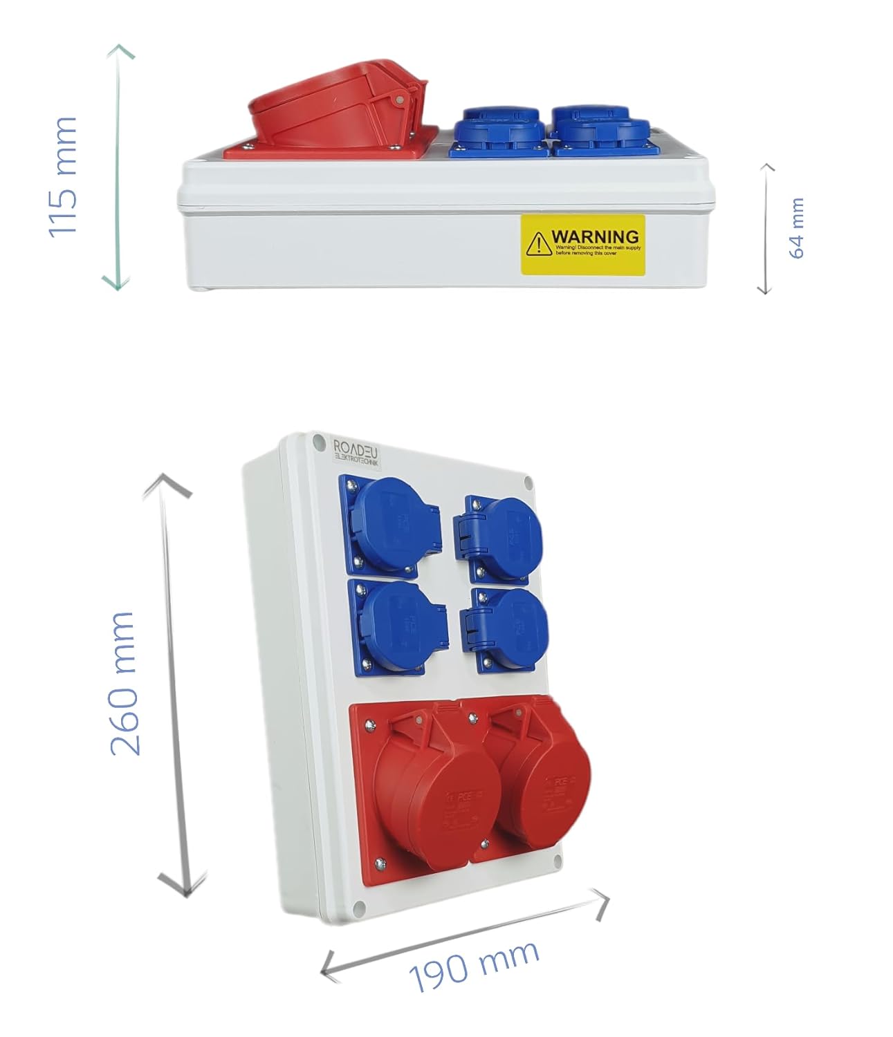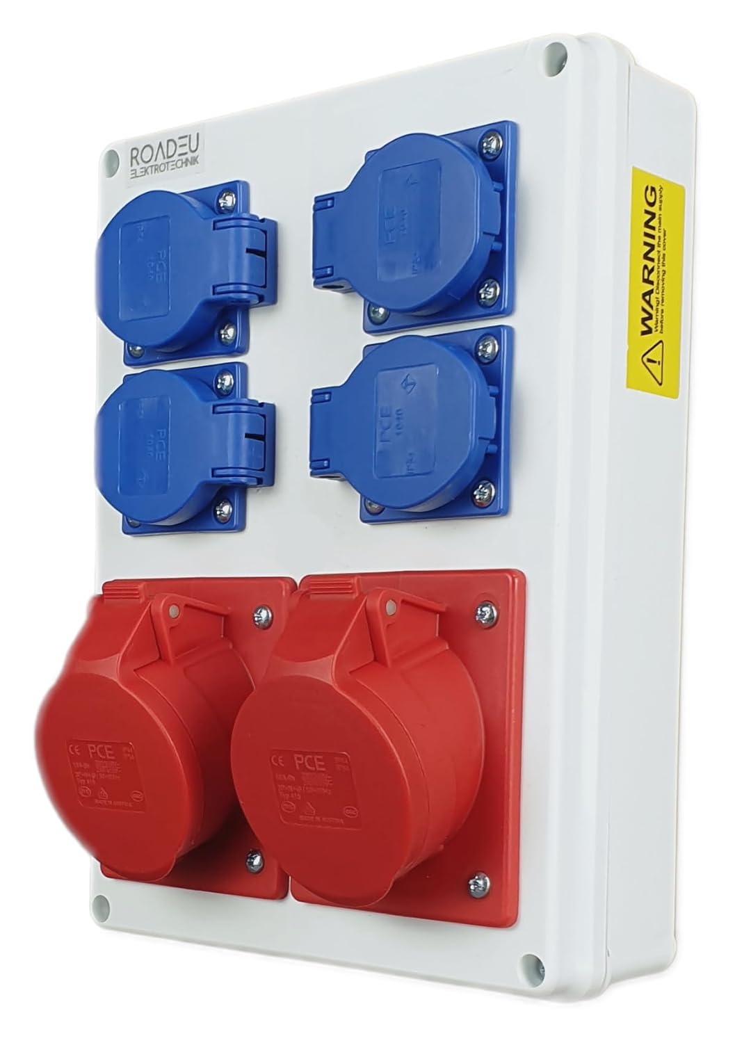 Der Stromverteiler besteht aus in Europa hergestellten Komponenten. Die Betriebssicherheit wird durch hohe europäische Standards gewährleistet. Unsere starkstrom steckdose und 230V steckdose sind sicher für den Benutzer und die Geräte, die sie betreiben.