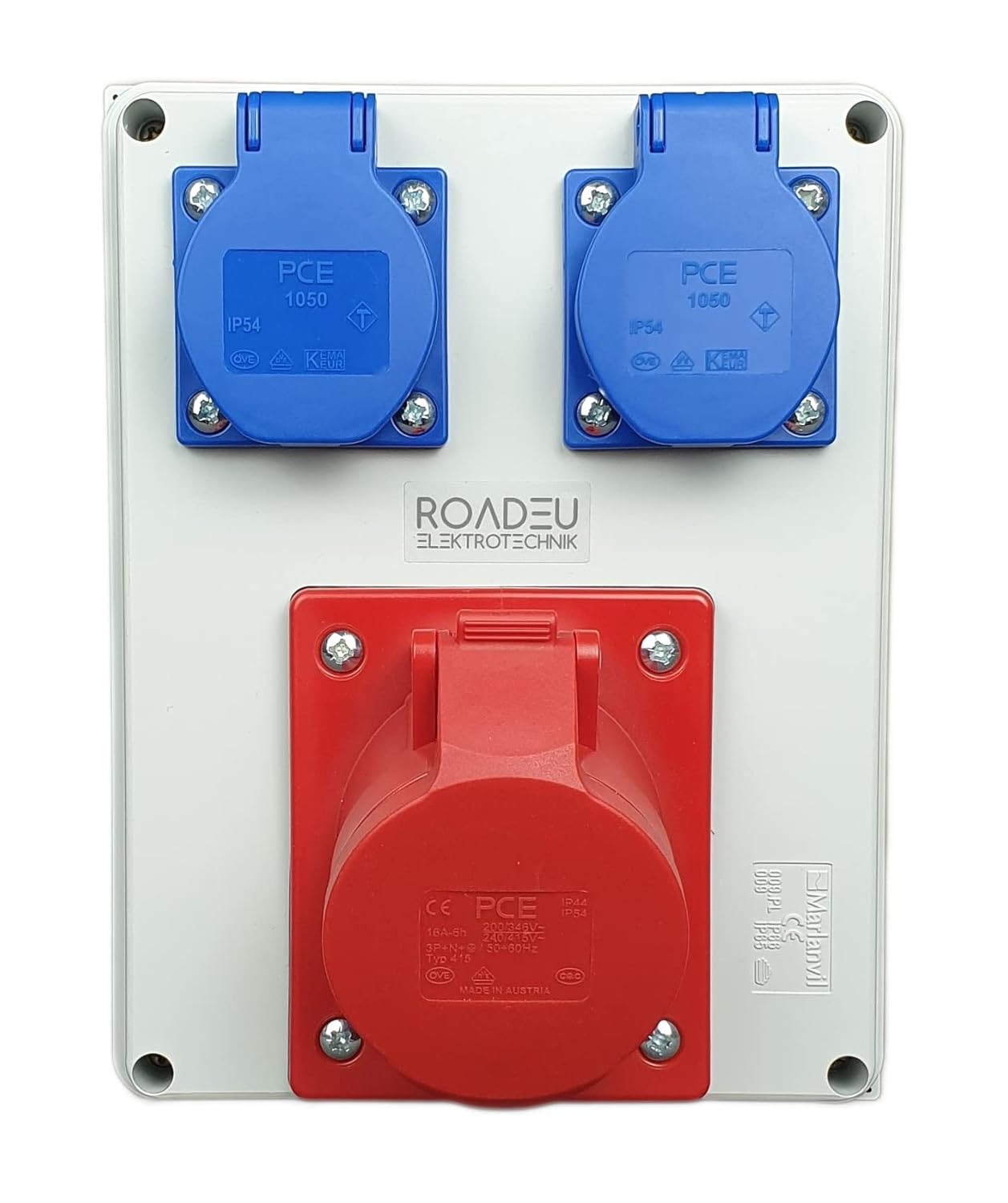 ⚡ Kombinierter Stromverteiler 400V & 230V CEE-Steckdose 16A (5-polig, 400V) in Kombination mit 2x Schuko-Steckdosen 230V – eine flexible Lösung für Maschinen, Werkzeuge und Geräte mit unterschiedlichem Leistungsbedarf.