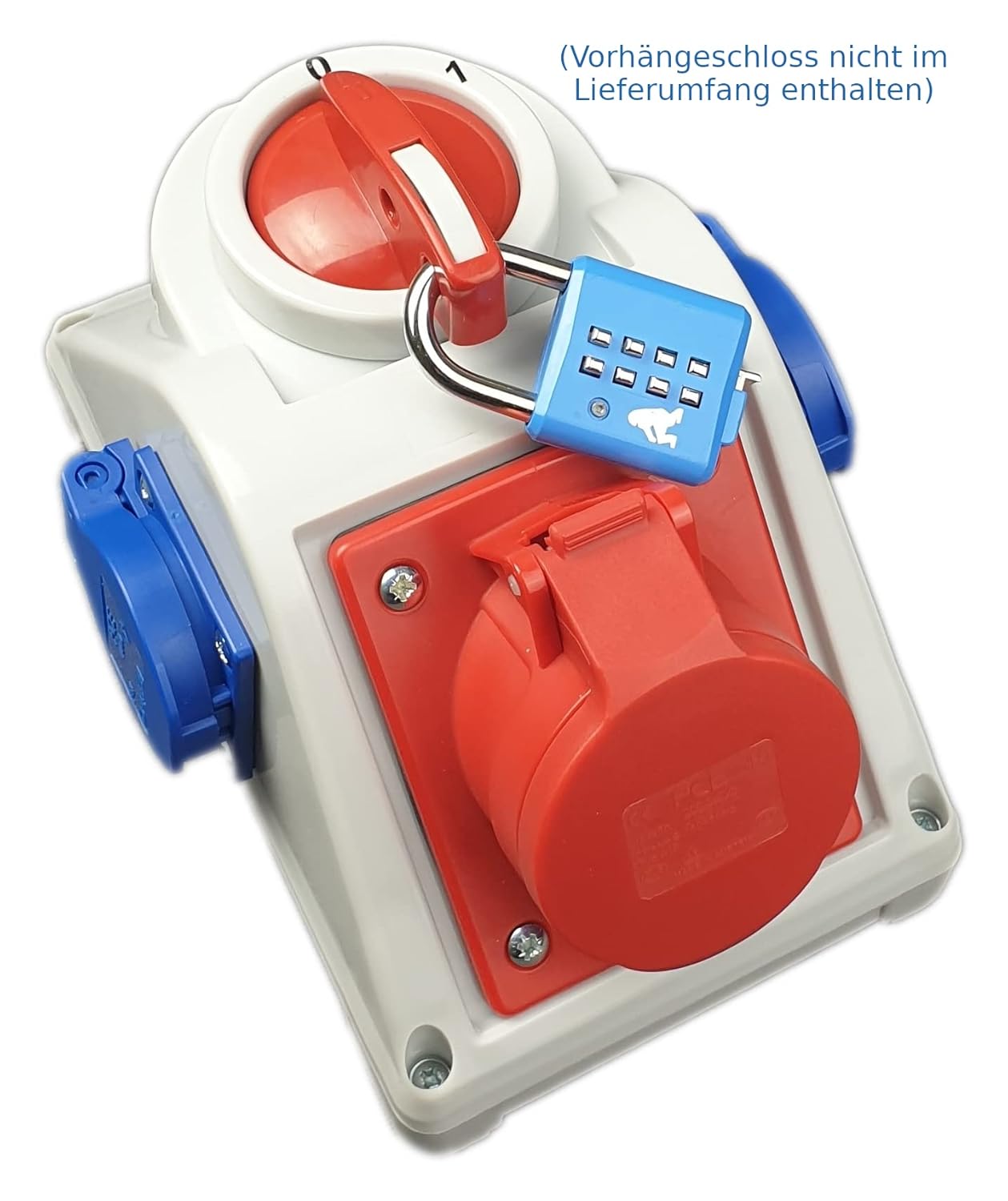 HAUPTSCHALTER 3 POLIG : Mit dem integrierten 0-1 Lasttrennschalter können Sie die Spannung in den Steckdosen jederzeit ein- oder ausschalten, was für zusätzliche Sicherheit – kann in der Position 0 mit einem Vorhängeschloss verriegelt werden, um unbefugten Zugriff zu verhindern (Vorhängeschloss nicht im Lieferumfang enthalten).
