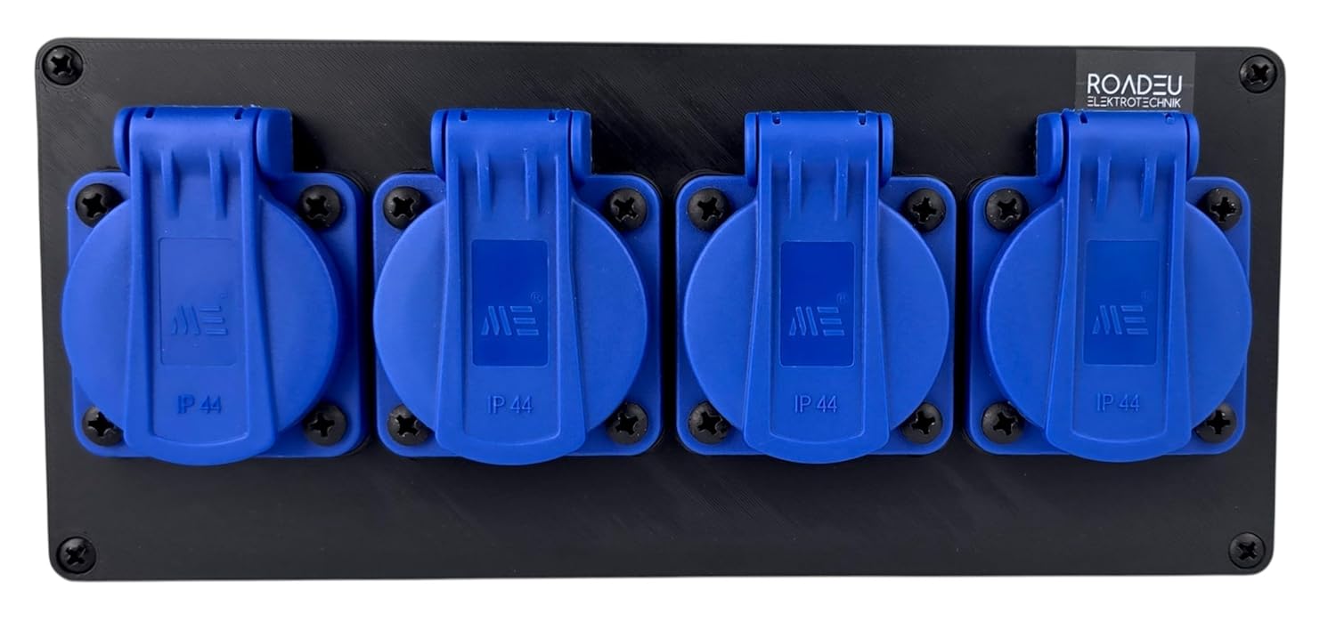 🔌 4 Schuko-Steckdosen mit 16A Leistung – Ideal für Werkzeuge, Maschinen und Haushaltsgeräte. Perfekt für den professionellen Einsatz auf Baustellen oder in Werkstätten.
