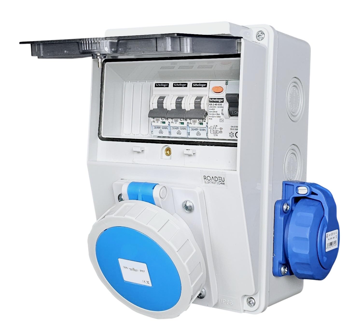 ⚡ Höchste Sicherheit – FI & LS-Schutz: Integrierter FI-Schutzschalter 40A 30mA Typ A plus LS-Schalter: 1x C32A für CEE, 2x C16A für Schuko. Maximaler Personen- und Geräteschutz.