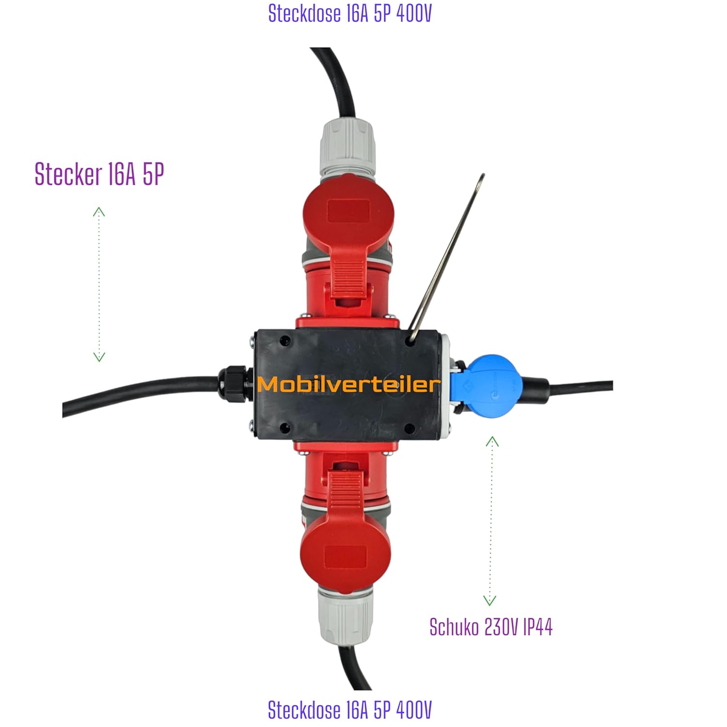 • Sicher und zuverlässig Elektroverteiler: Mit 5-poligem 16A CEE-Stecker und 2x CEE-Dosen 16A 5P, inklusive 1x zusätzlichen Schuko-Steckdose.