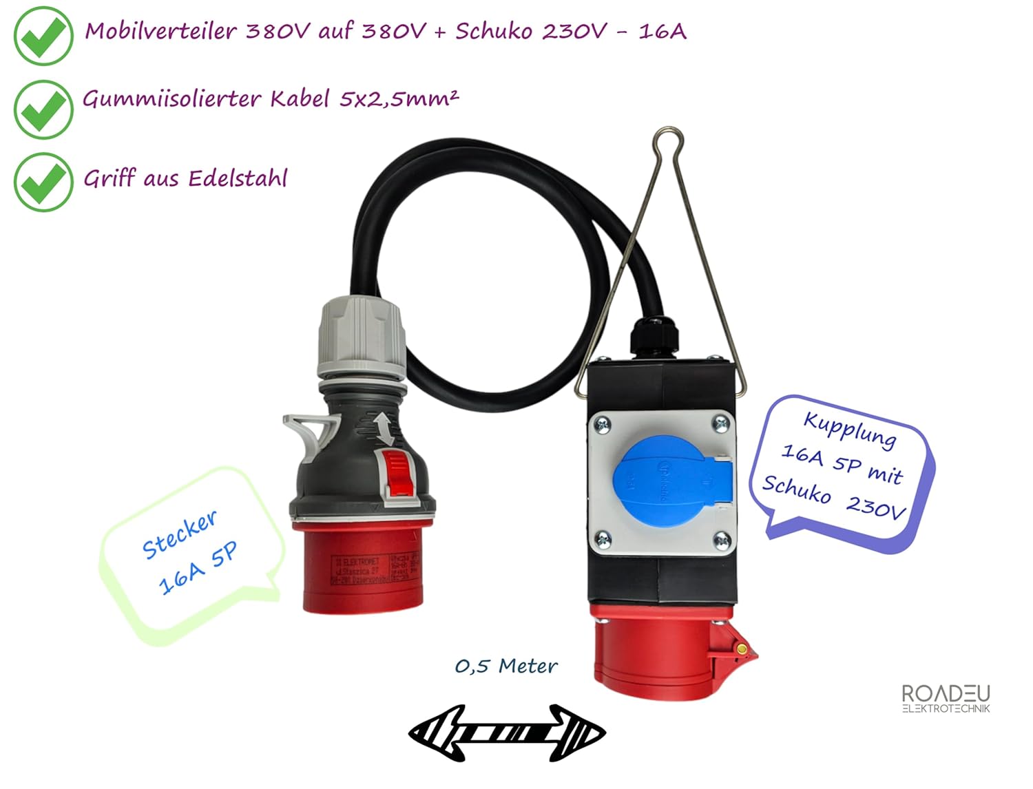 - Sicher und zuverlässig Elektroverteiler: Mit 5-poligem 16A CEE-Stecker und CEE-Dose, inklusive zwei zusätzlichen Schuko-Steckdosen.