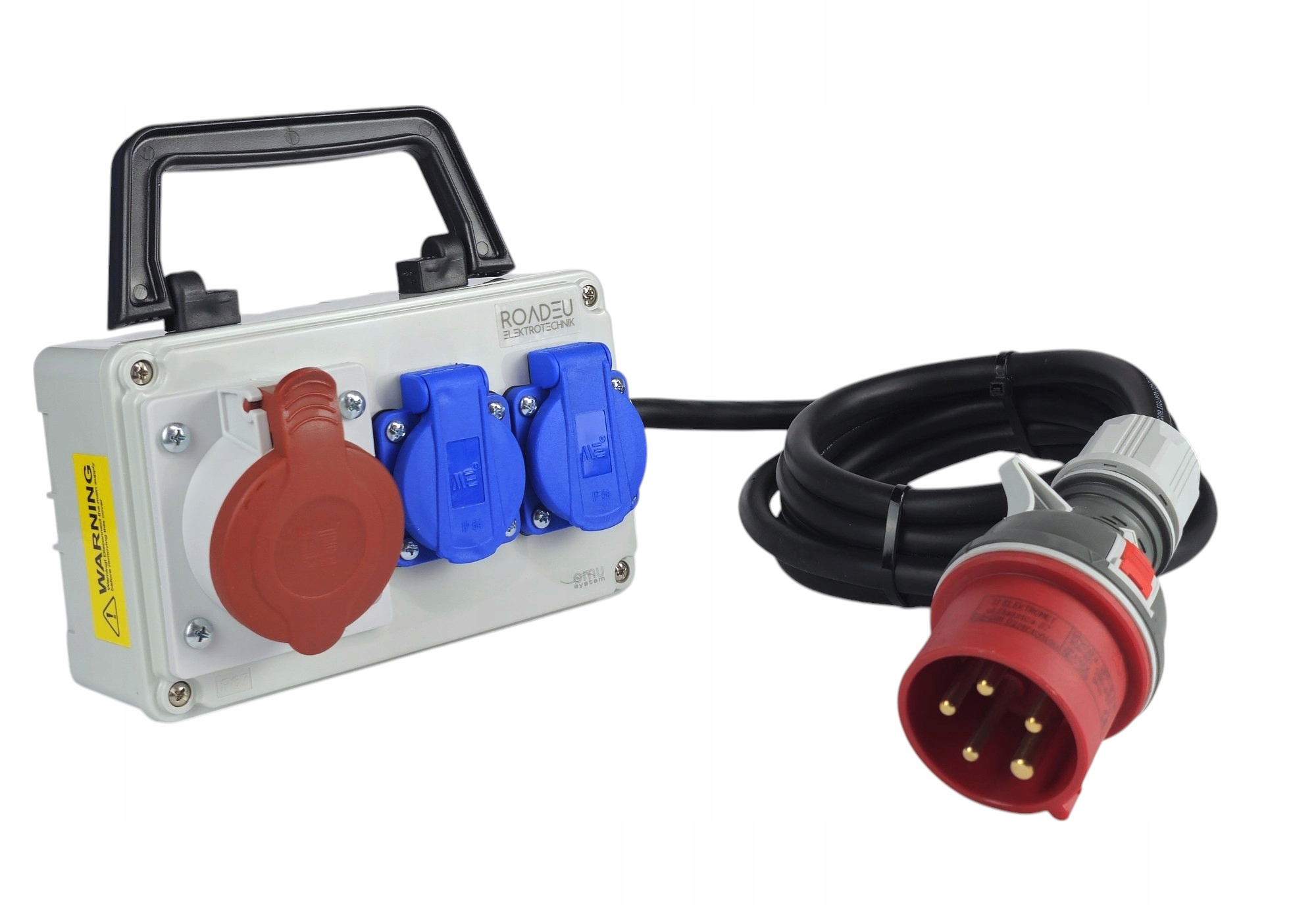 16A 5P 400V Steckdose integriert mit zwei 230V einphasigen Steckdosen.