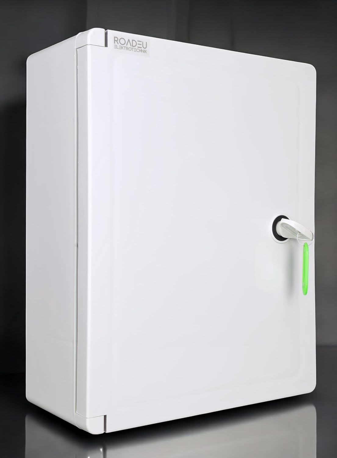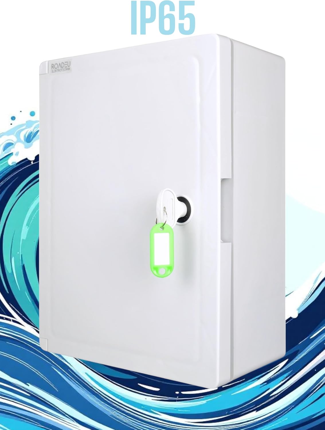 Resistente al agua y al polvo – IP65 – Totalmente protegido contra el polvo y los chorros de agua. La robusta puerta con cerradura de llave triangular de seguridad garantiza un acceso protegido a
