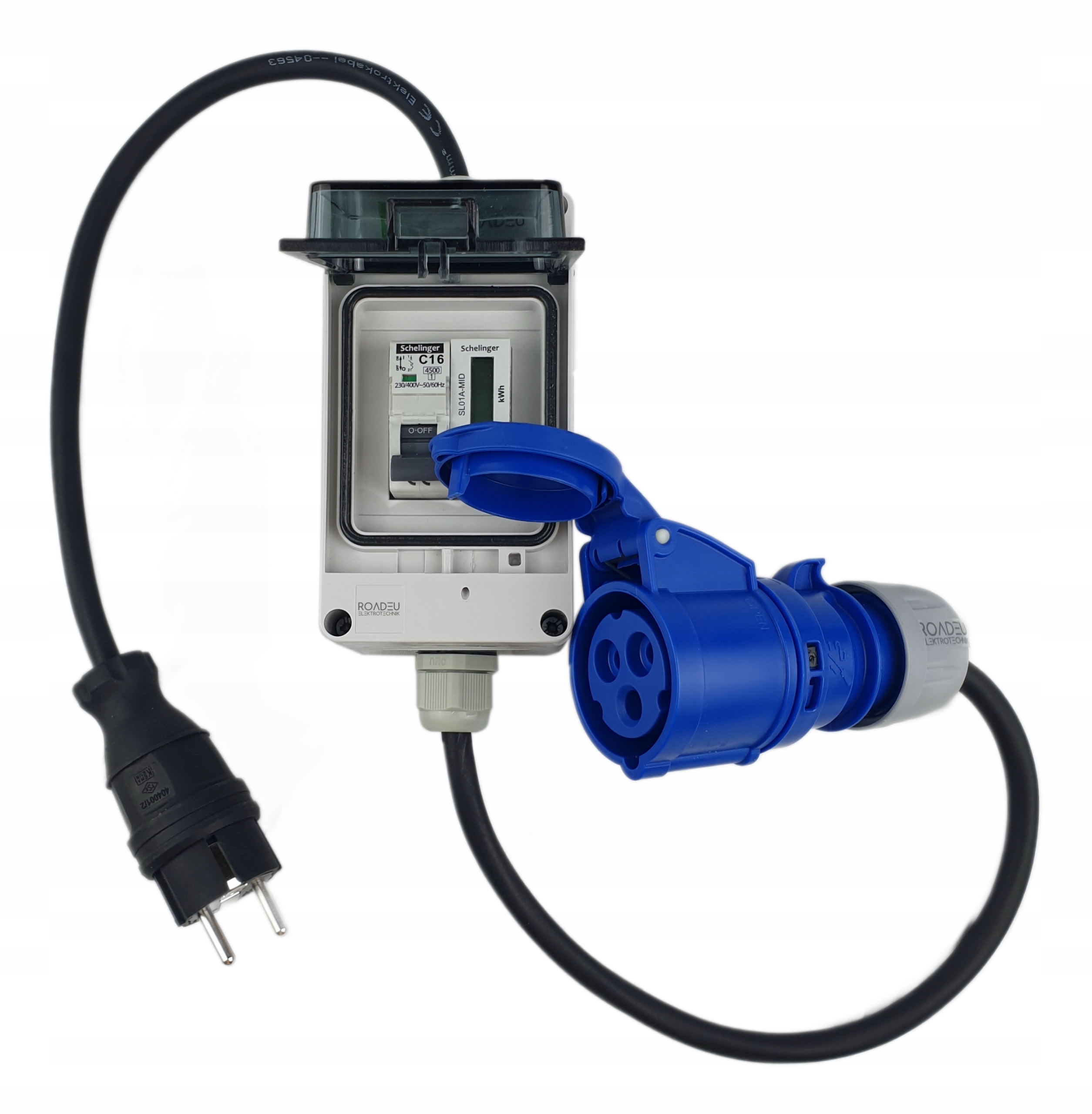 câble en caoutchouc – résistant à l’abrasion, aux chocs, à l’écrasement, aux graisses et aux huiles minérales. Max. 3600 watts.