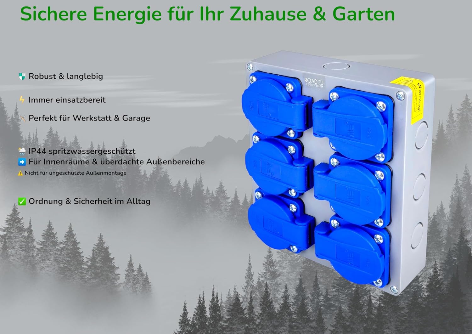 ☔ Protection IP44 (Projections d’Eau) : Bloc multiprise en saillie certifié avec protection efficace contre la poussière et les projections d’eau (IP44). Idéal pour les environnements industriels et humides.