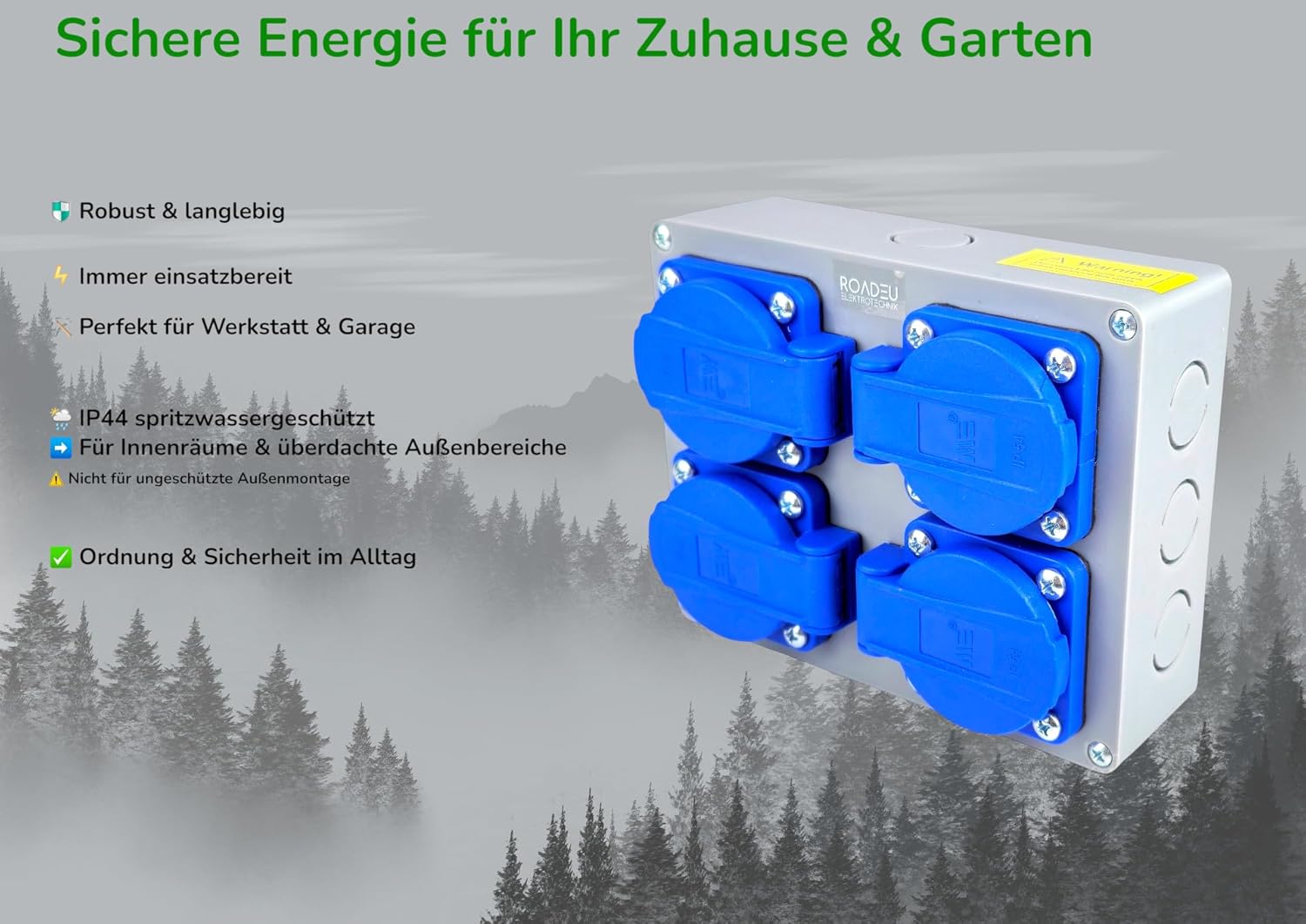 ☔ Protection IP44 (Projections d’Eau) : Bloc multiprise en saillie certifié avec protection efficace contre la poussière et les projections d’eau (IP44). Idéal pour garage, atelier, cave ou espaces extérieurs couverts.