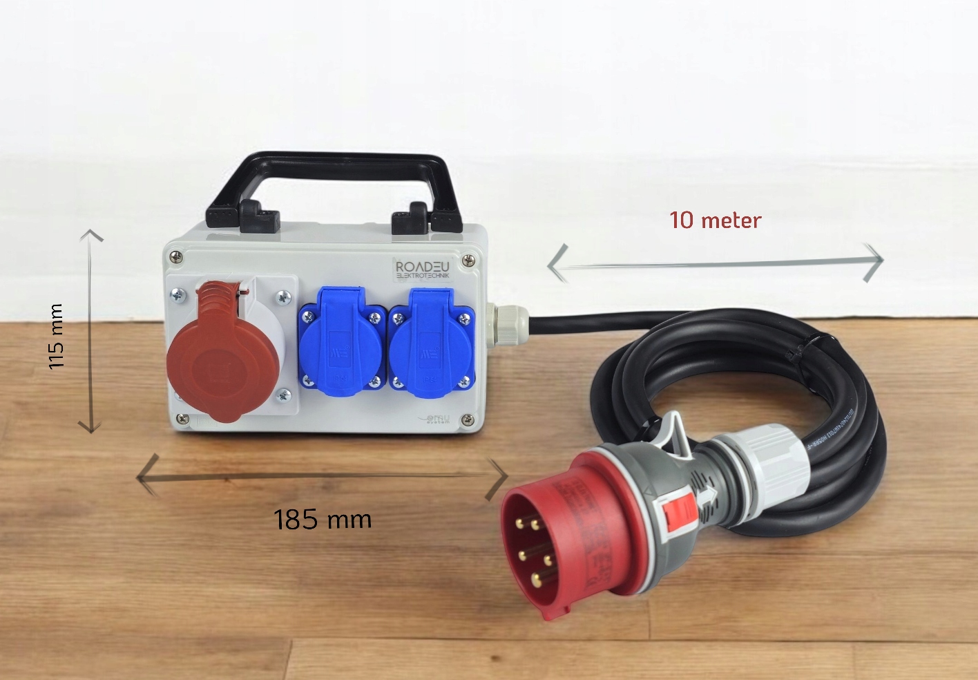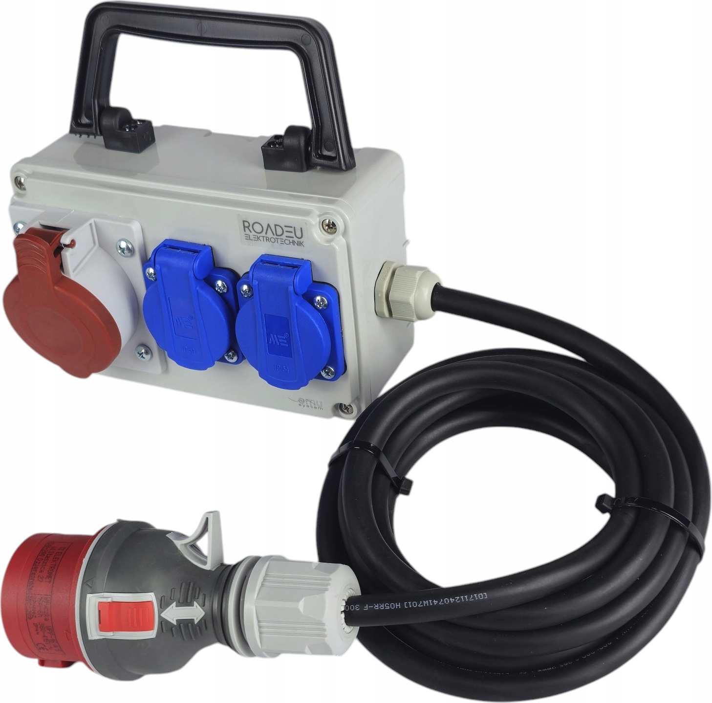 Distributeur d’énergie sûr et fiable : fiche 16A à 5 broches avec poignée caoutchoutée.