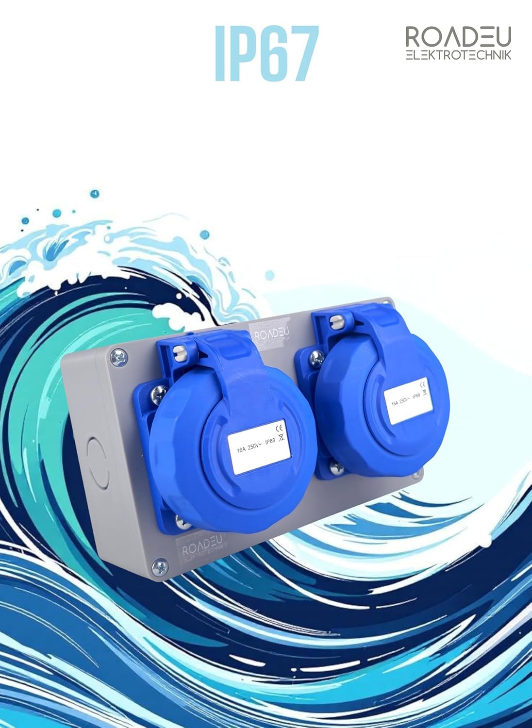 💧 IP67 – Étanchéité Totale grâce à la Triple Protection Protection intégrale contre la poussière et l’eau grâce à une triple étanchéité : boîtier, prises et couvercles. Idéal pour les environnements humides, la pluie, le nettoyage et les chantiers.