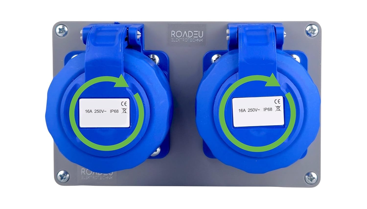 🔌 2 Prises 230V 16A (2P+T) avec Couvercles Vissables Coffret robuste équipé de deux prises au standard français, chacune protégée par un couvercle vissable avec joint pour une connexion sûre et fiable en intérieur comme en extérieur.