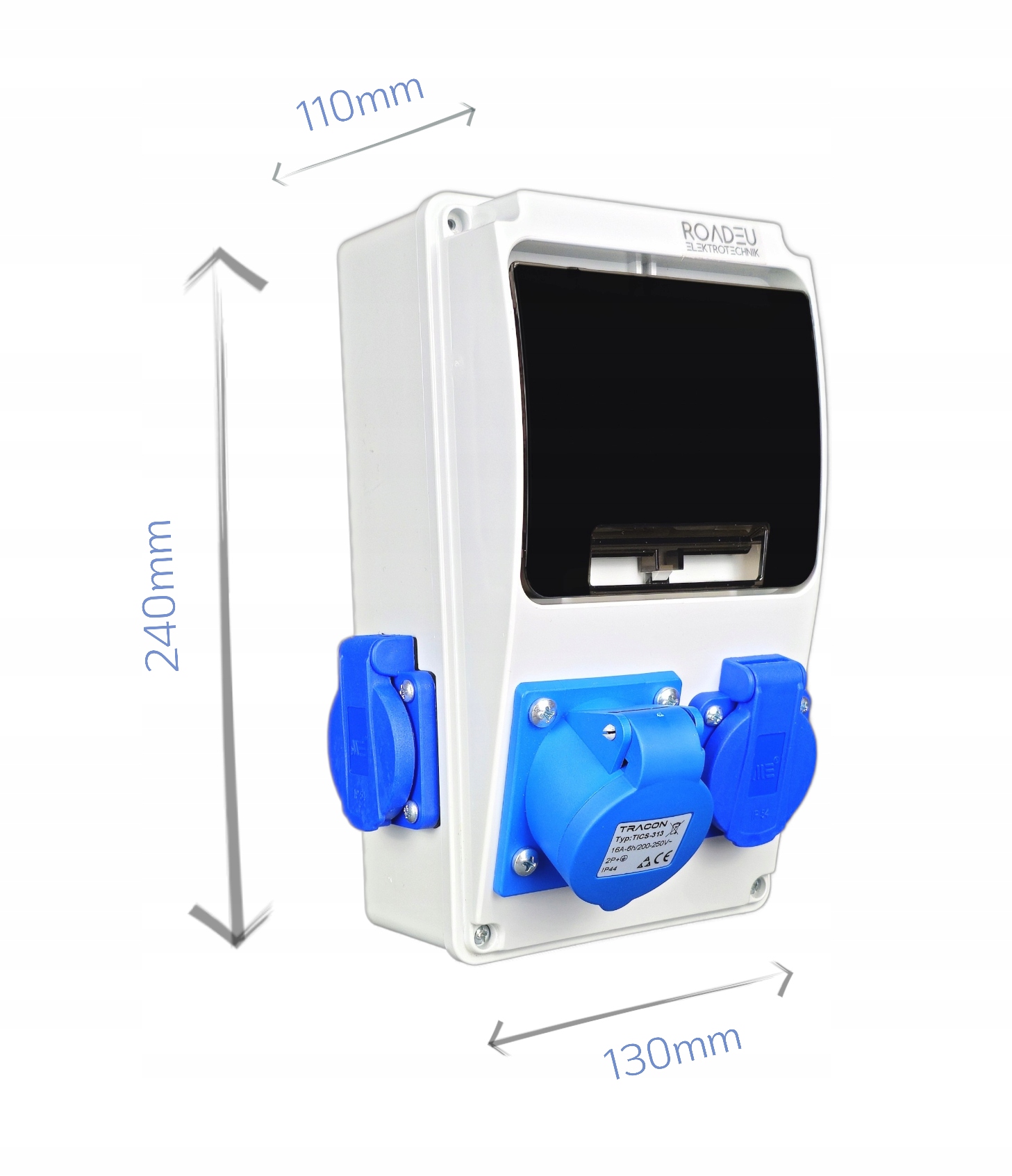 Distributore di corrente portatile monofase da 230 V con prese standard e presa CEE 16A 3P.