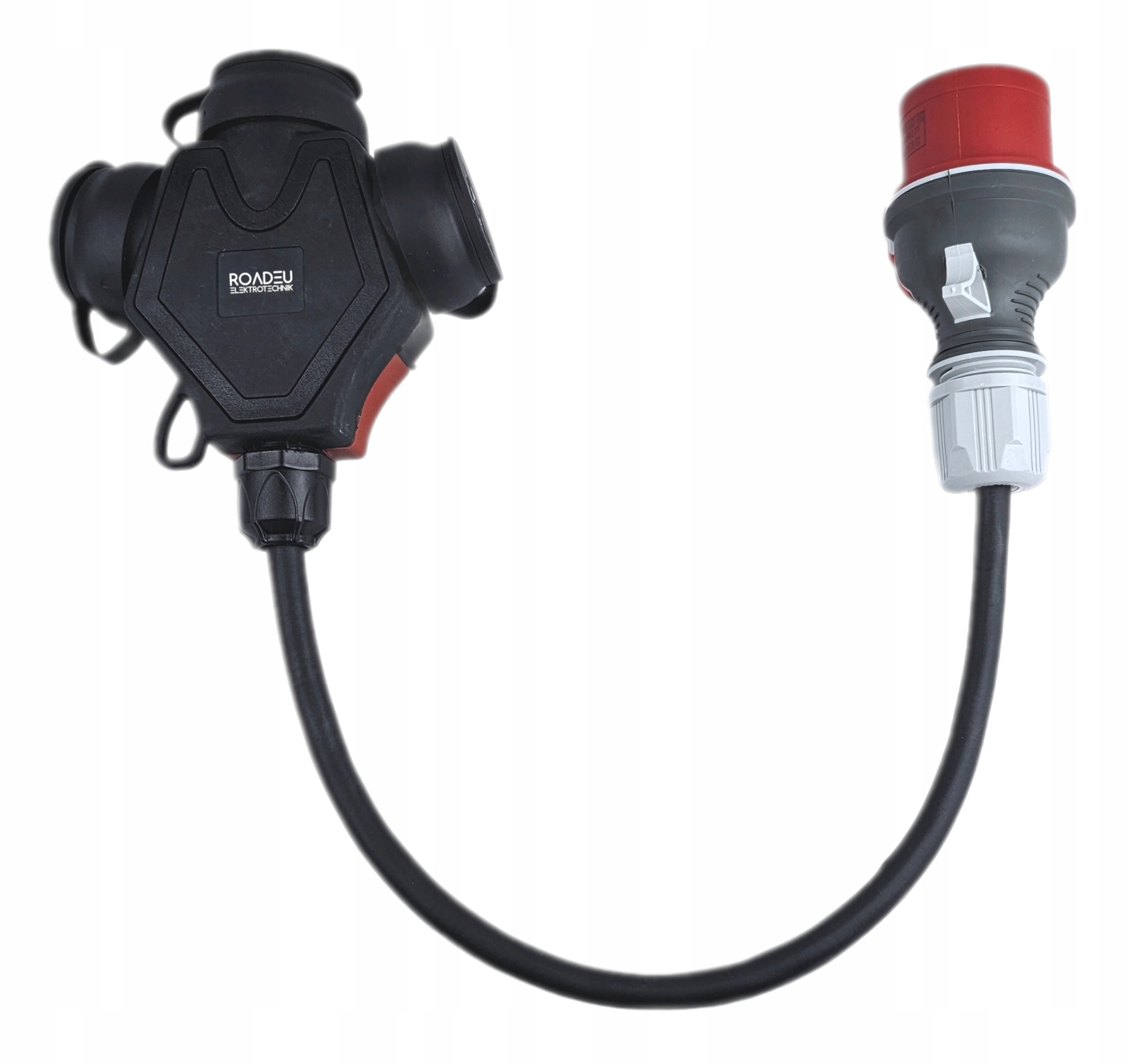 - Distributore da 16A con spina 5P da 16A di alta qualità, impugnatura in gomma. Cavo in rame con guaina in gomma.